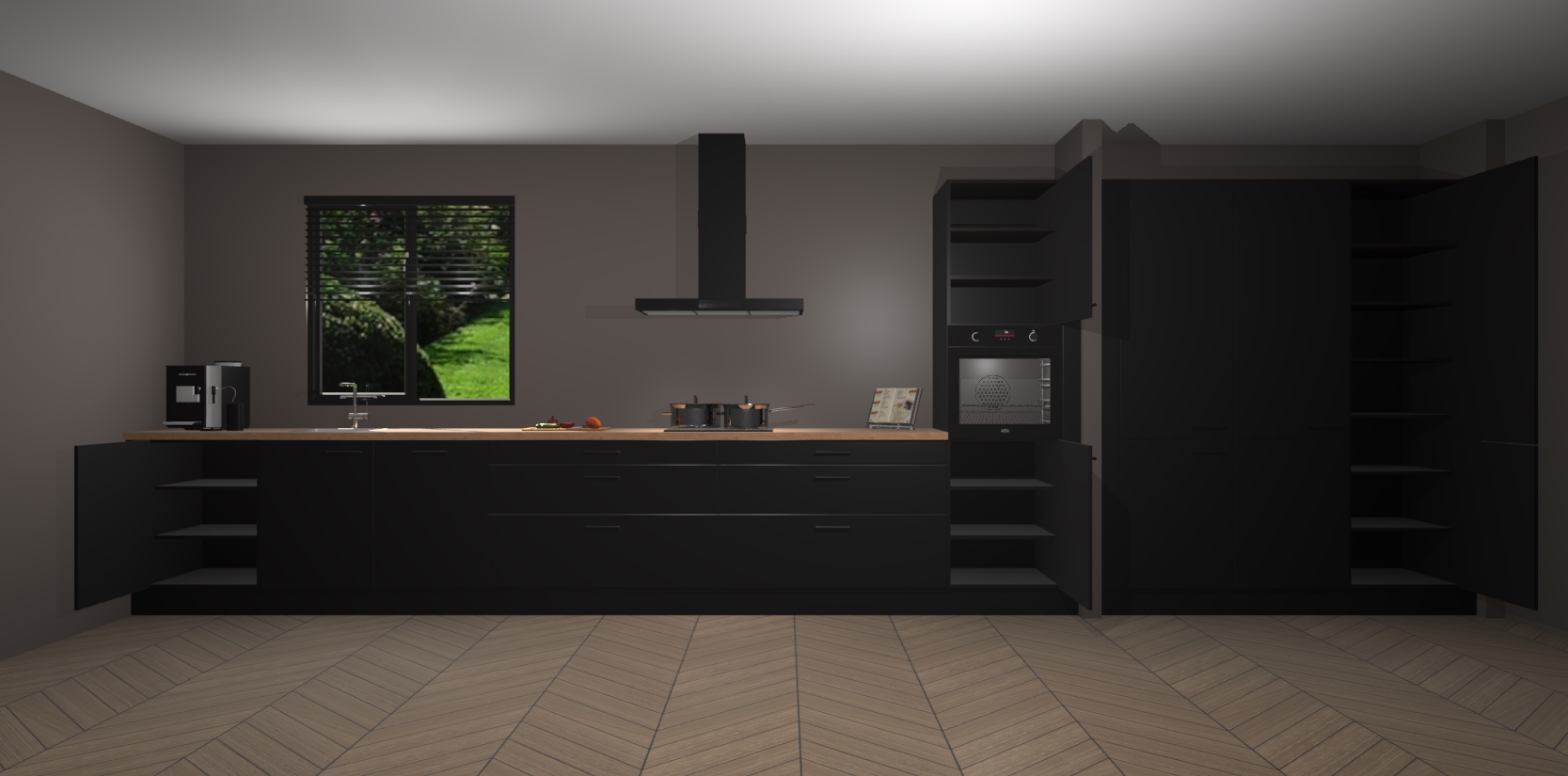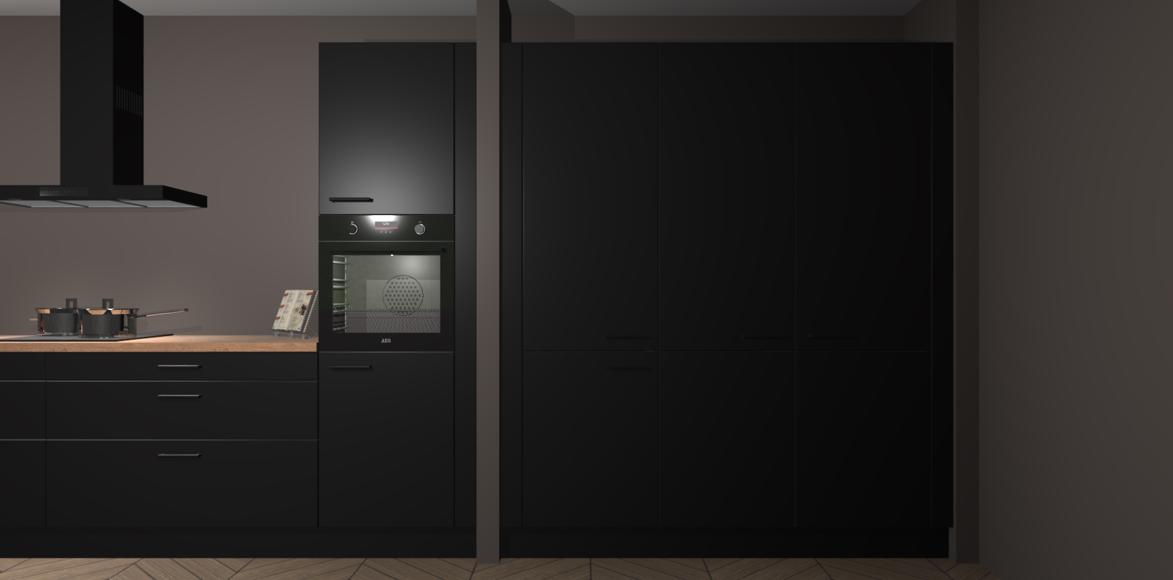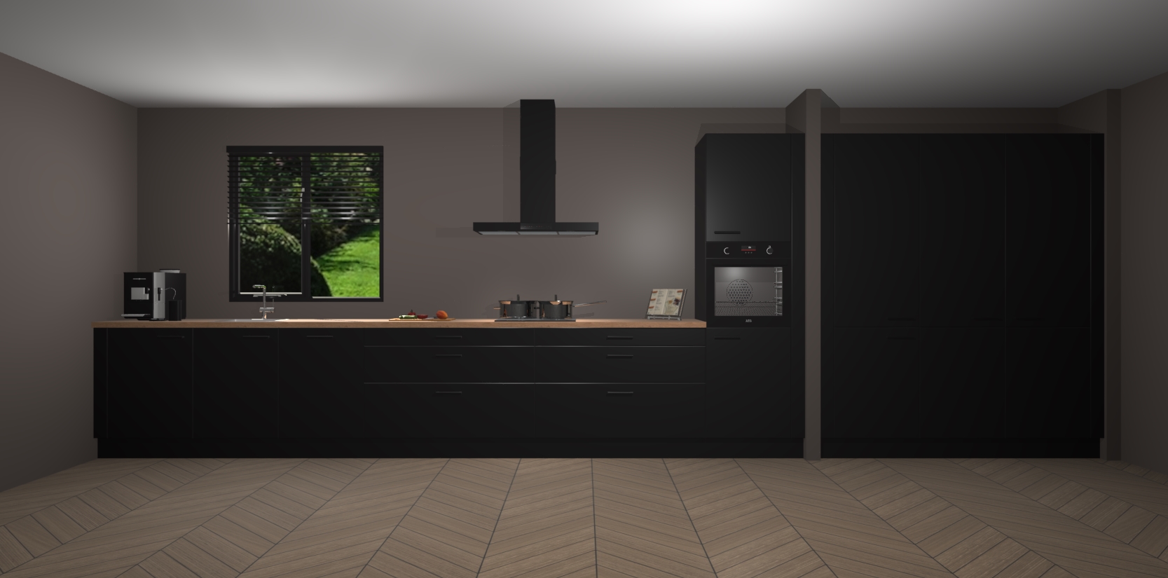 Een stijlvolle en praktische keuken als deze mag gezien worden. Dankzij de prachtige matte afwerking wordt de keuken gemakkelijk het middelpunt van uw huis - hij ziet er geweldig uit onder allerlei lichtomstandigheden, van dag tot nacht!