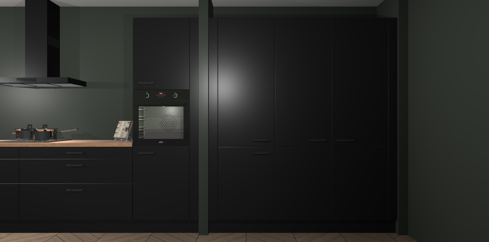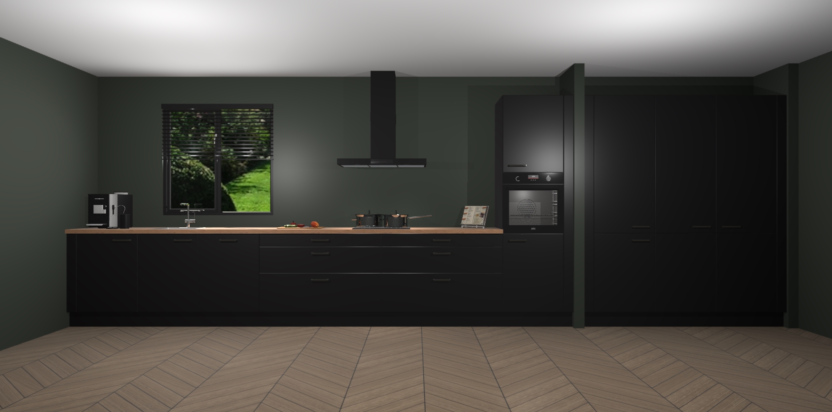 Een stijlvolle en praktische keuken als deze mag gezien worden. Dankzij de prachtige matte afwerking wordt de keuken gemakkelijk het middelpunt van uw huis - hij ziet er geweldig uit onder allerlei lichtomstandigheden, van dag tot nacht!