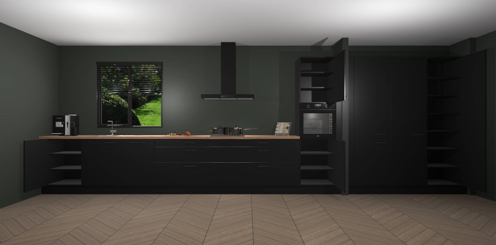 Dankzij de afwerking past de Zwarte keuken Angola naadloos in elk huis of appartement. De soft-close deuren geven je extra gemoedsrust, want ze sluiten vanzelf en slaan nooit dicht! En alsof dat nog niet genoeg is, worden deze kasten volledig gemonteerd geleverd, dus maak je geen zorgen over eventuele installatieproblemen.