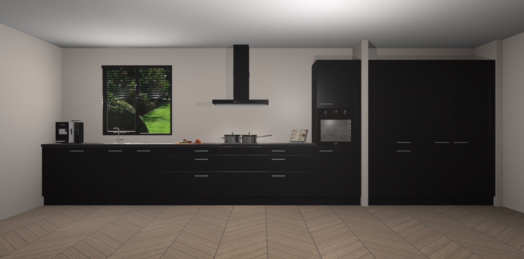 Een stijlvolle en praktische keuken als deze mag gezien worden. Dankzij de prachtige matte afwerking wordt de keuken gemakkelijk het middelpunt van uw huis - hij ziet er geweldig uit onder allerlei lichtomstandigheden, van dag tot nacht!