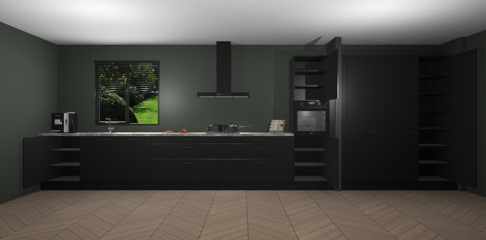 Een stijlvolle en praktische keuken als deze mag gezien worden. Dankzij de prachtige matte afwerking wordt de keuken gemakkelijk het middelpunt van uw huis - hij ziet er geweldig uit onder allerlei lichtomstandigheden, van dag tot nacht!
