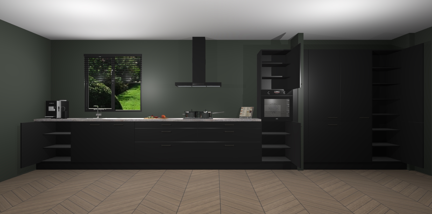 Een stijlvolle en praktische keuken als deze mag gezien worden. Dankzij de prachtige matte afwerking wordt de keuken gemakkelijk het middelpunt van uw huis - hij ziet er geweldig uit onder allerlei lichtomstandigheden, van dag tot nacht!