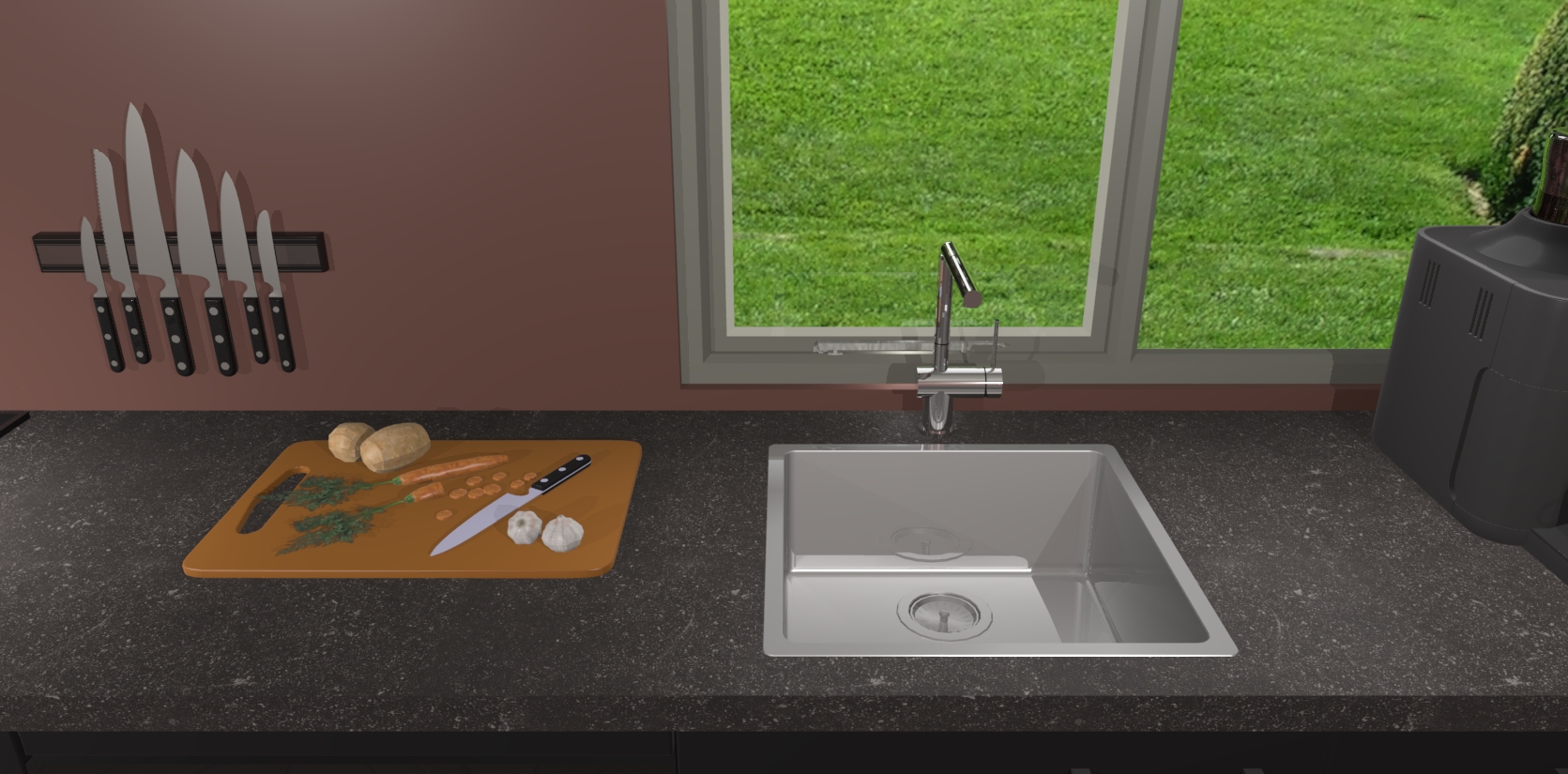 - De spoelbak is nog niet in gevreesd. Dit dient tijdens het werk gedaan te worden