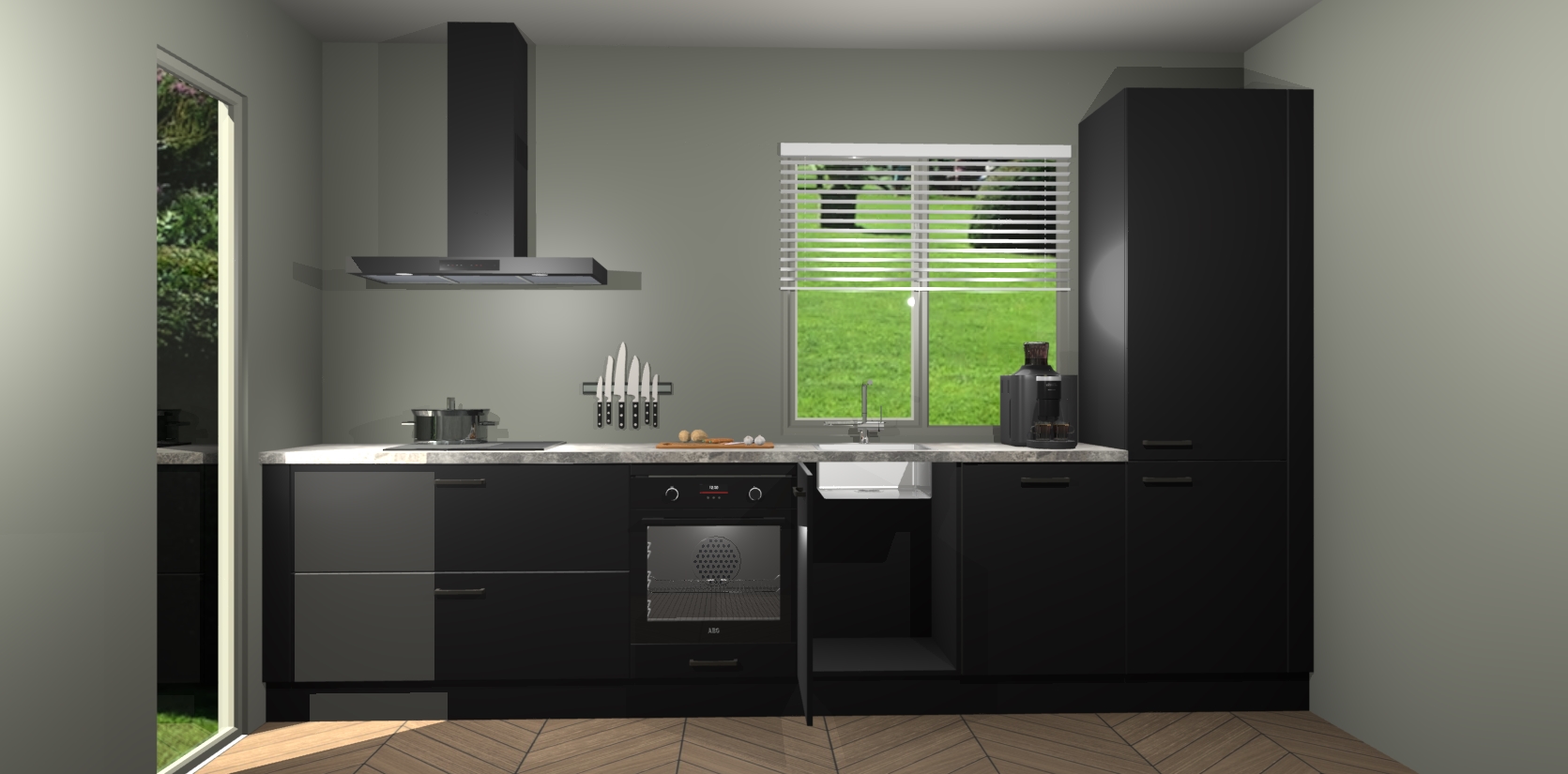 Maak kennis met de nieuwe Zwarte keuken Antigua - een verbluffend, hoogwaardig keukenontwerp die uw ruimte gegarandeerd omtovert tot iets buitengewoons! Met zijn eigentijdse kastdeuren met luxueuze softclose systeem is de Zwarte keuken Antigua de perfecte keuze voor iedereen die de look en feel van zijn leefruimte wil opwaarderen.