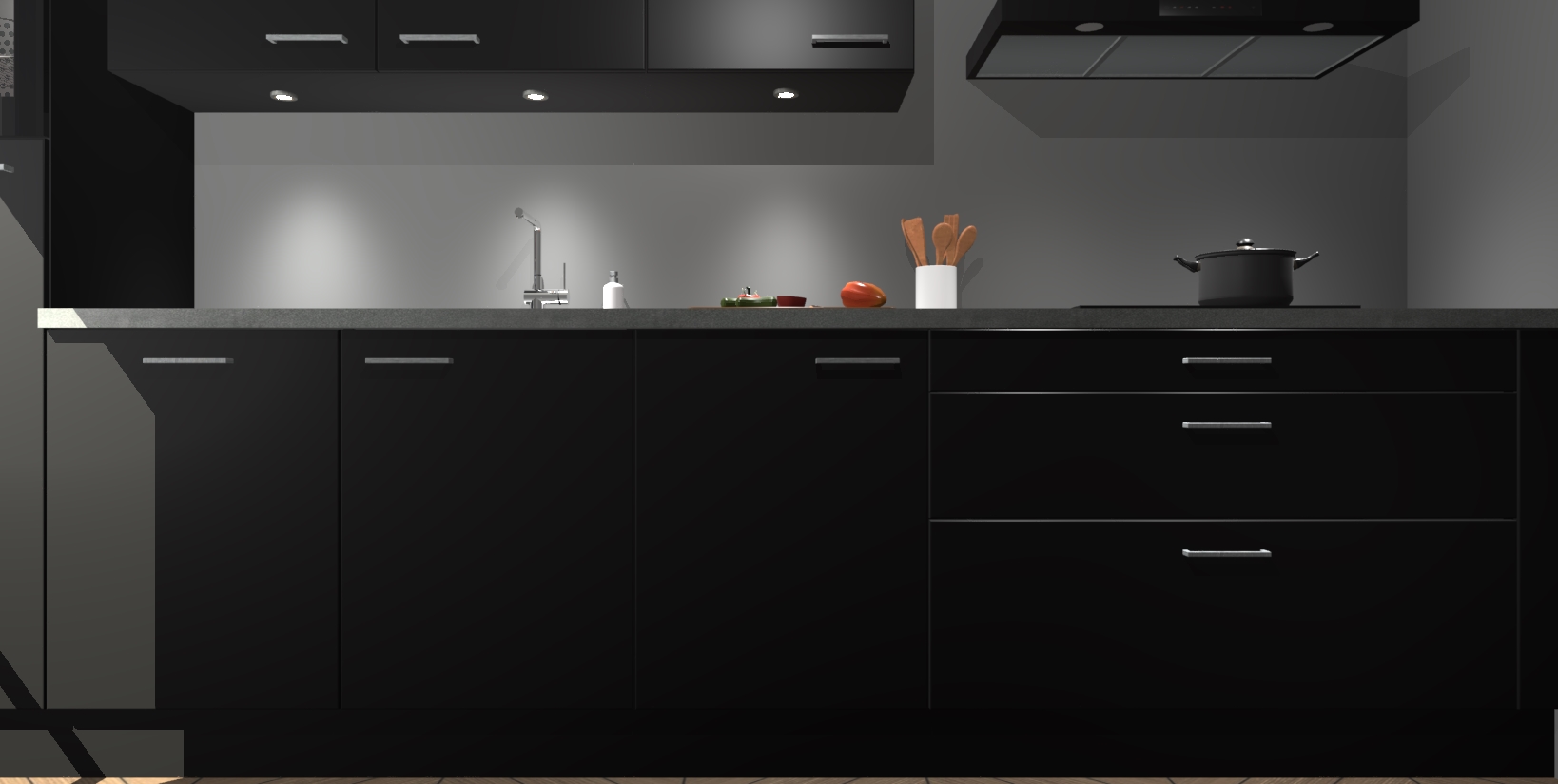 Inclusief plinten, stelpoten en werkblad