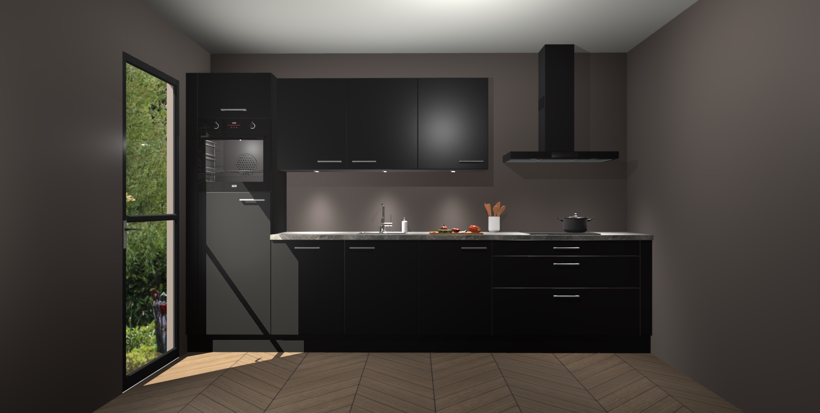 De Zwarte keuken Asmara: waar tijdloze elegantie en robuuste constructie elkaar ontmoeten. Door de combinatie van luxe en veerkracht zal deze keuken u de komende jaren goed van dienst zijn. De prachtige zachte look zorgt voor een tijdloze esthetiek die niet zal slijten met de tijd, waardoor u een decoratieve toevoeging aan uw huis creëert. Onze hoogwaardige kasten zijn gebouwd om lang mee te gaan en is zeer duurzaam en bestand tegen krassen, waardoor het ideaal is voor drukke gezinnen.