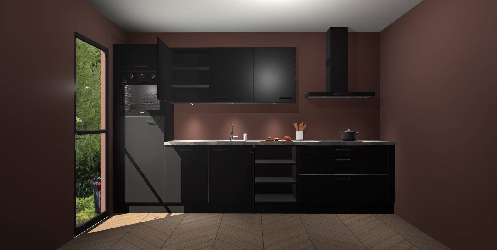 De Zwarte keuken Asmara: waar tijdloze elegantie en robuuste constructie elkaar ontmoeten. Door de combinatie van luxe en veerkracht zal deze keuken u de komende jaren goed van dienst zijn. De prachtige zachte look zorgt voor een tijdloze esthetiek die niet zal slijten met de tijd, waardoor u een decoratieve toevoeging aan uw huis creëert. Onze hoogwaardige kasten zijn gebouwd om lang mee te gaan en is zeer duurzaam en bestand tegen krassen, waardoor het ideaal is voor drukke gezinnen.