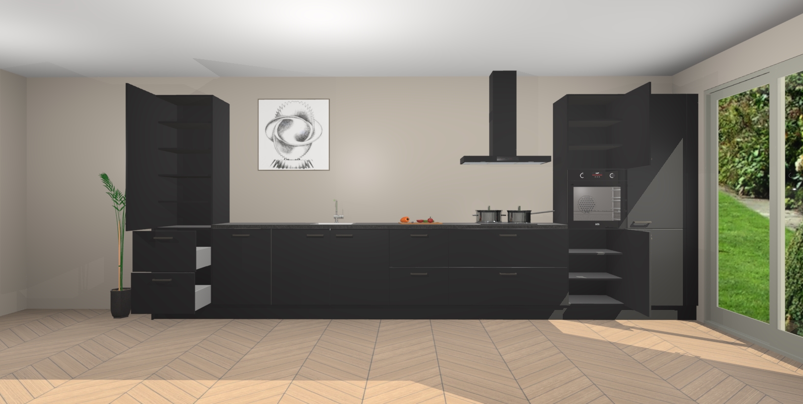 De Zwarte keuken Barentsburg is de perfecte combinatie van stijl en functionaliteit. Het strakke design geeft uw keuken een moderne look die jarenlang meegaat. Bovendien zorgen onze deuren met softclose voor extra gebruiksgemak en gemoedsrust.