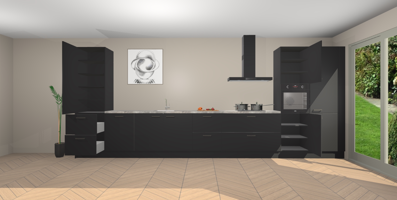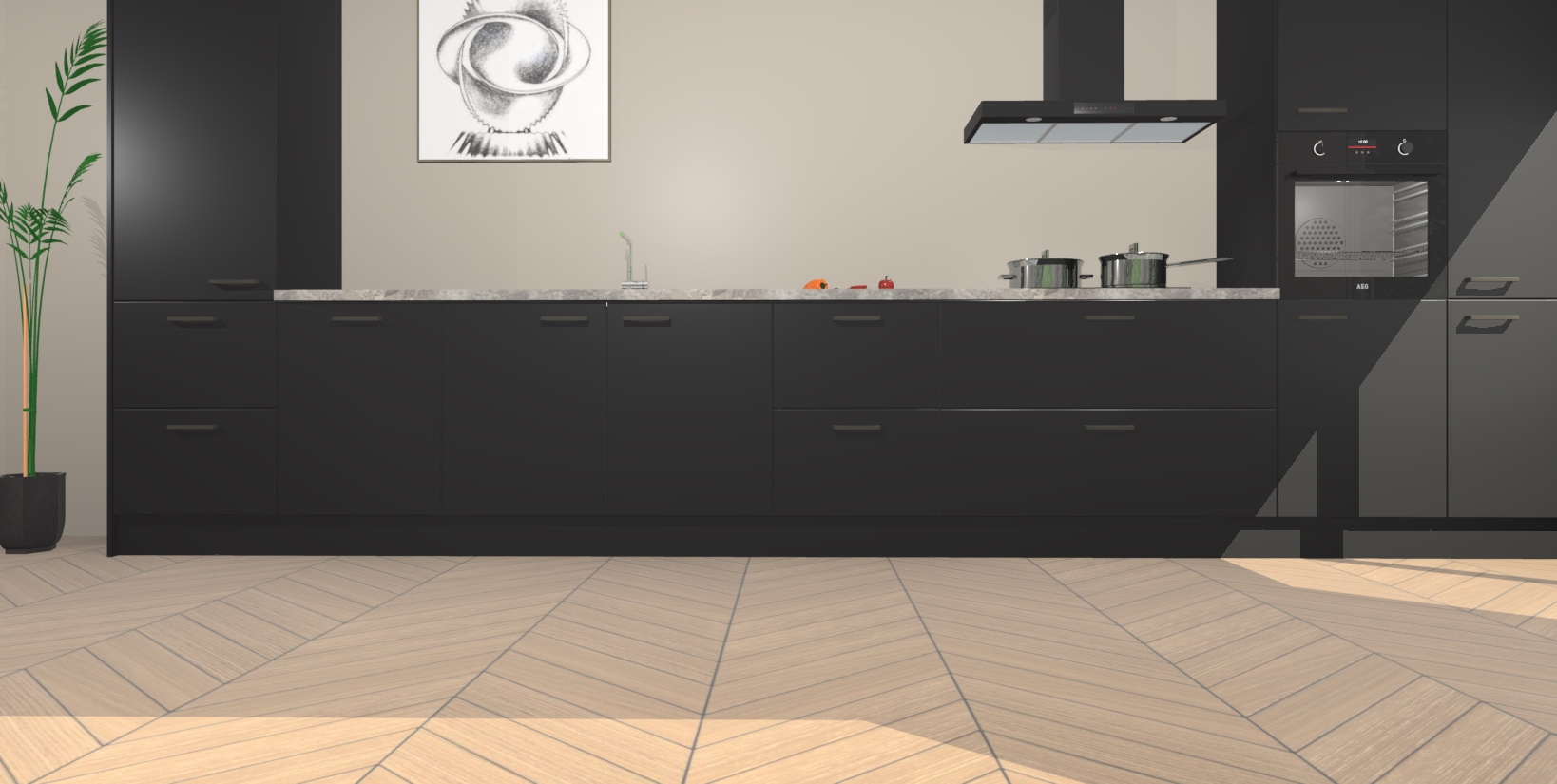 Inclusief plinten, stelpoten en werkblad
