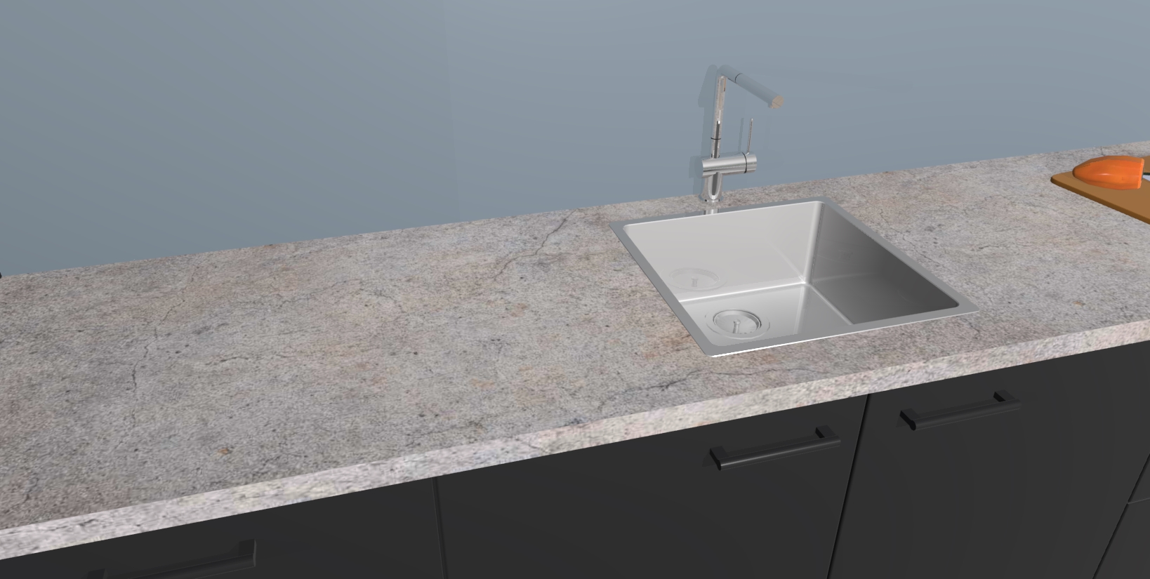 - De spoelbak is nog niet in gevreesd. Dit dient tijdens het werk gedaan te worden