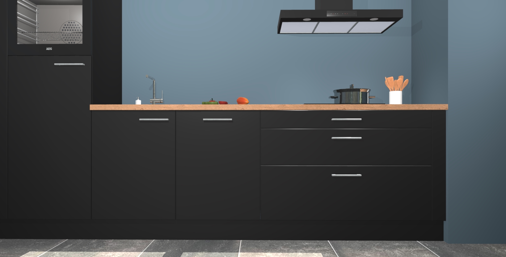 De Zwarte keuken Belize is gemaakt van de beste materialen op de markt, dus u kunt erop vertrouwen dat hij u niet in de steek zal laten. Bovendien kunt u hem gemakkelijk upgraden naar het AEG-model als u er nog meer uit wilt halen!
