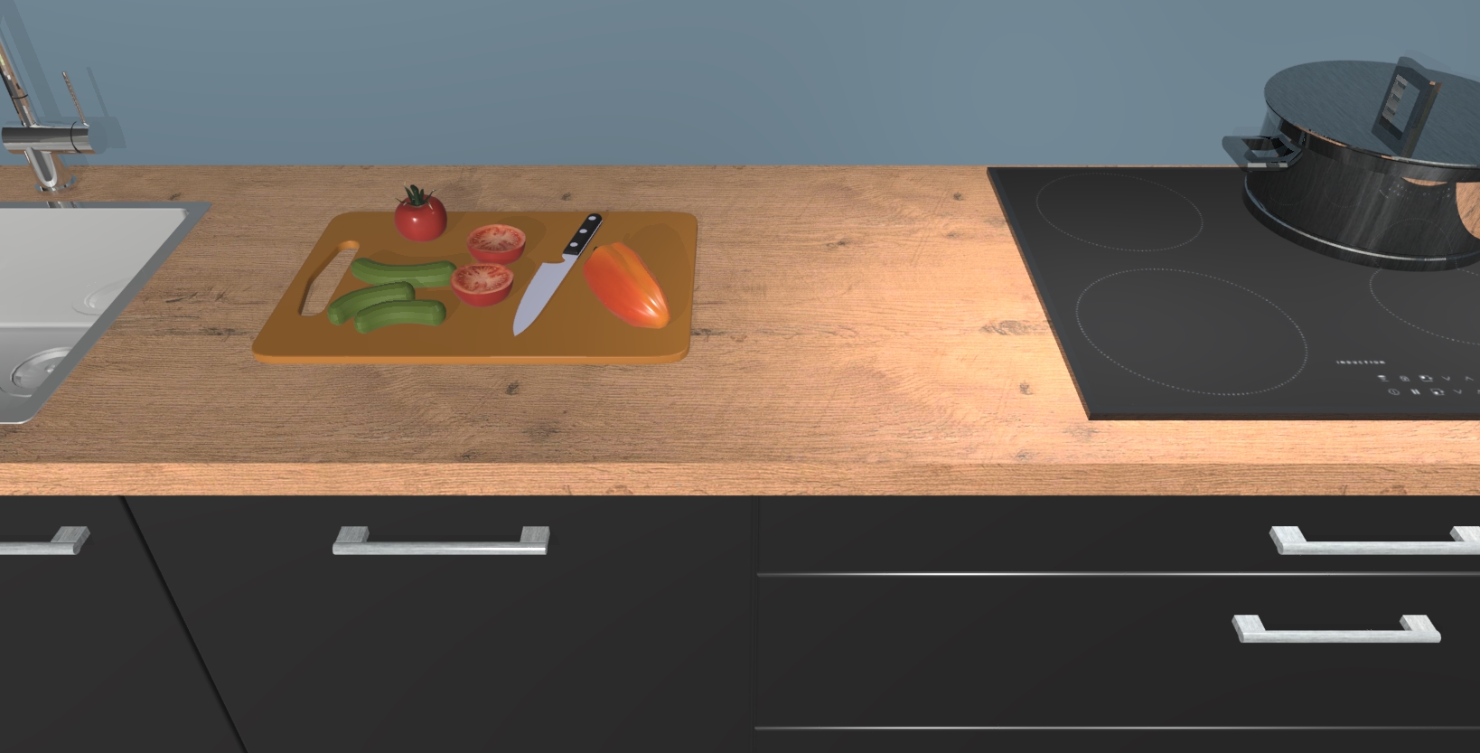 - Uitsparing van kookplaat, spoelbak en kraan dient u zelf te verzorgen.