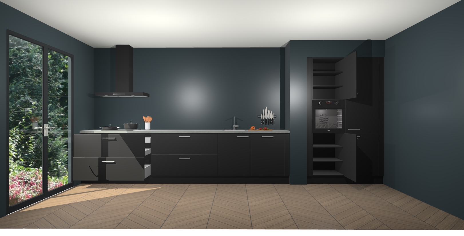 Maak kennis met de Zwarte keuken Calgary - de perfecte aanvulling voor uw moderne keuken! Ervaar tijdloos design, elegantie en een chique uitstraling met onze handgrepen, soft-close deuren en veel opbergruimte. Dit alles wordt aangeboden tegen een vaste lage prijs voor ongeëvenaarde Duitse keukenkwaliteit!