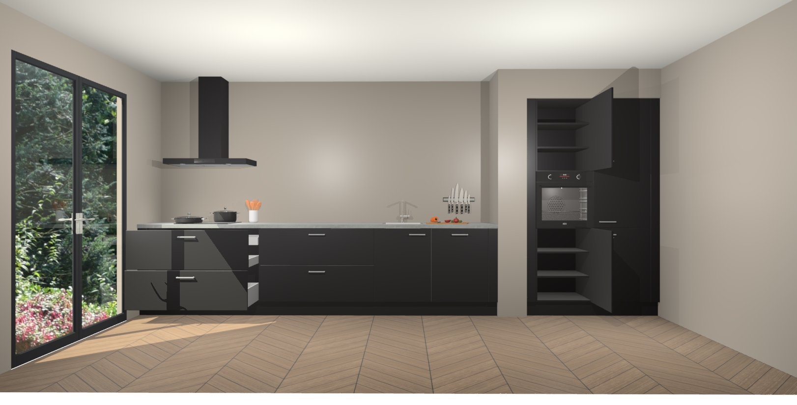Maak kennis met de Zwarte keuken Calgary - de perfecte aanvulling voor uw moderne keuken! Ervaar tijdloos design, elegantie en een chique uitstraling met onze handgrepen, soft-close deuren en veel opbergruimte. Dit alles wordt aangeboden tegen een vaste lage prijs voor ongeëvenaarde Duitse keukenkwaliteit!