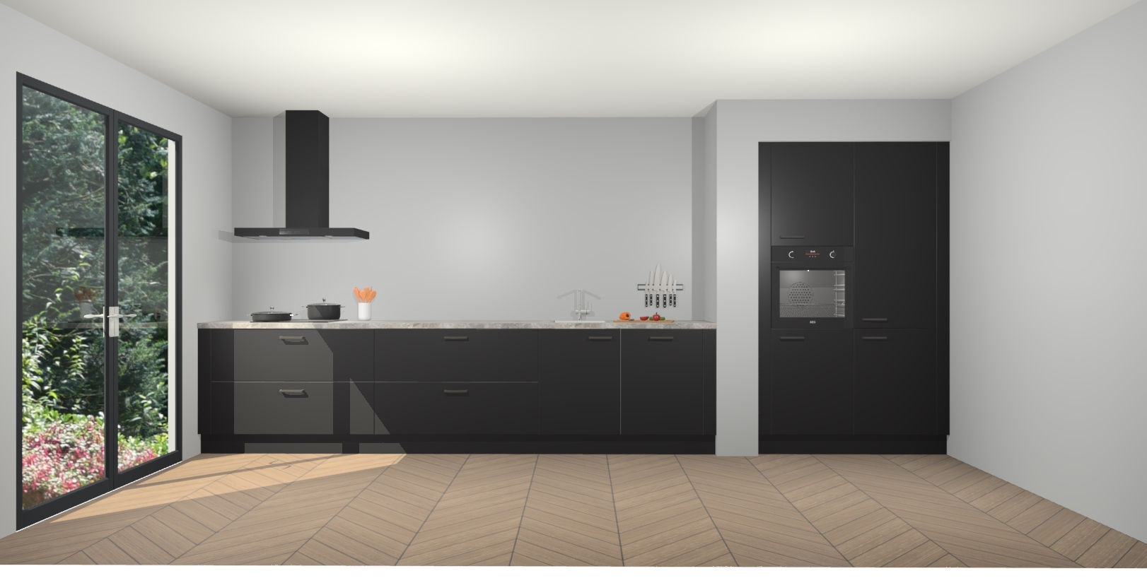 Maak kennis met de Zwarte keuken Calgary - de perfecte aanvulling voor uw moderne keuken! Ervaar tijdloos design, elegantie en een chique uitstraling met onze handgrepen, soft-close deuren en veel opbergruimte. Dit alles wordt aangeboden tegen een vaste lage prijs voor ongeëvenaarde Duitse keukenkwaliteit!