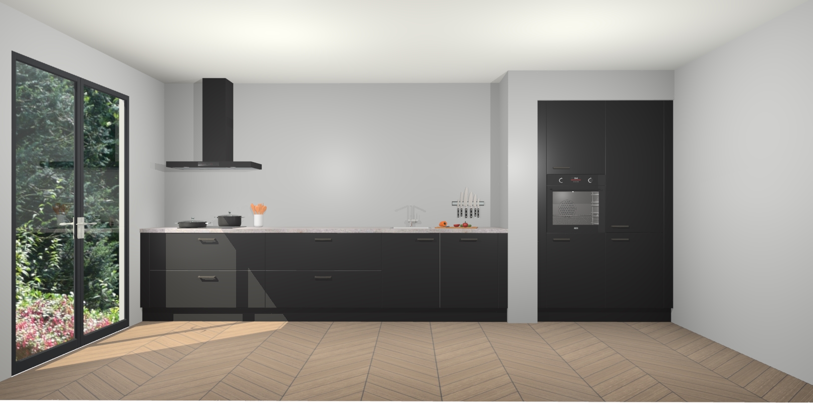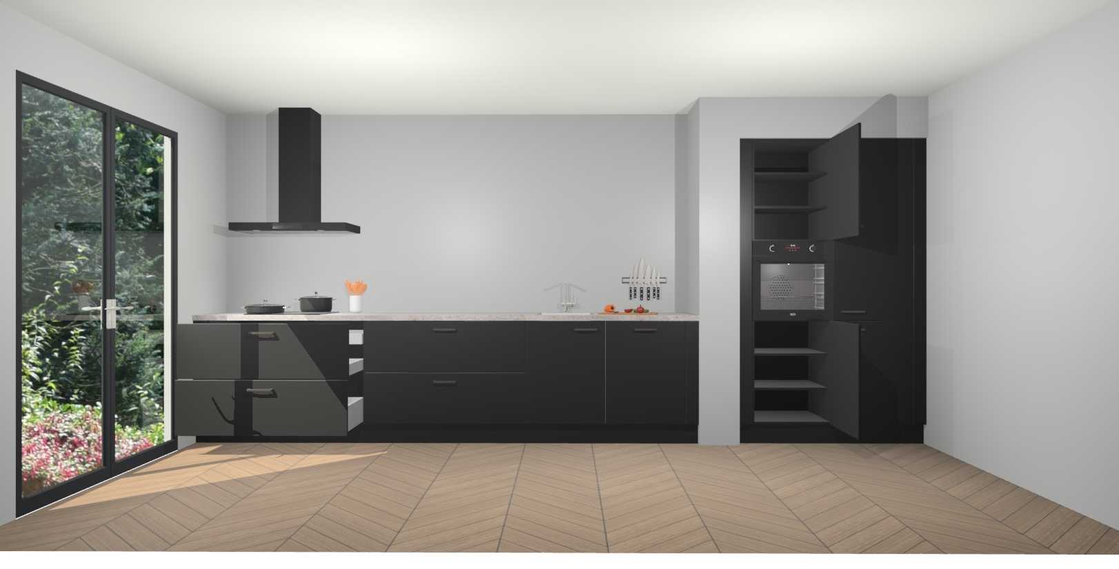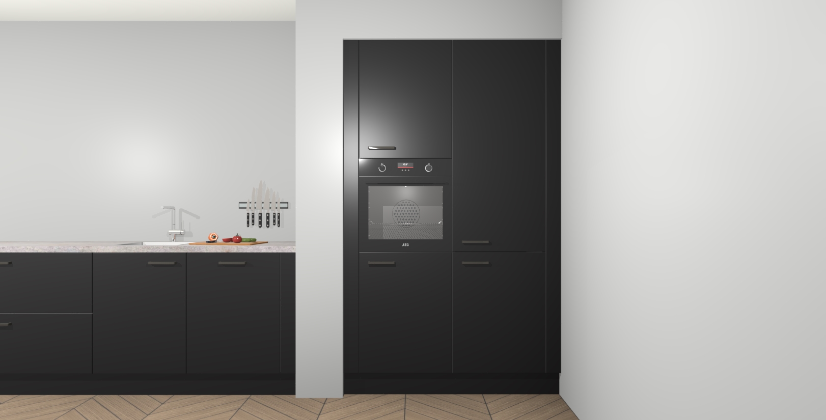 Maak kennis met de Zwarte keuken Calgary - de perfecte aanvulling voor uw moderne keuken! Ervaar tijdloos design, elegantie en een chique uitstraling met onze handgrepen, soft-close deuren en veel opbergruimte. Dit alles wordt aangeboden tegen een vaste lage prijs voor ongeëvenaarde Duitse keukenkwaliteit!