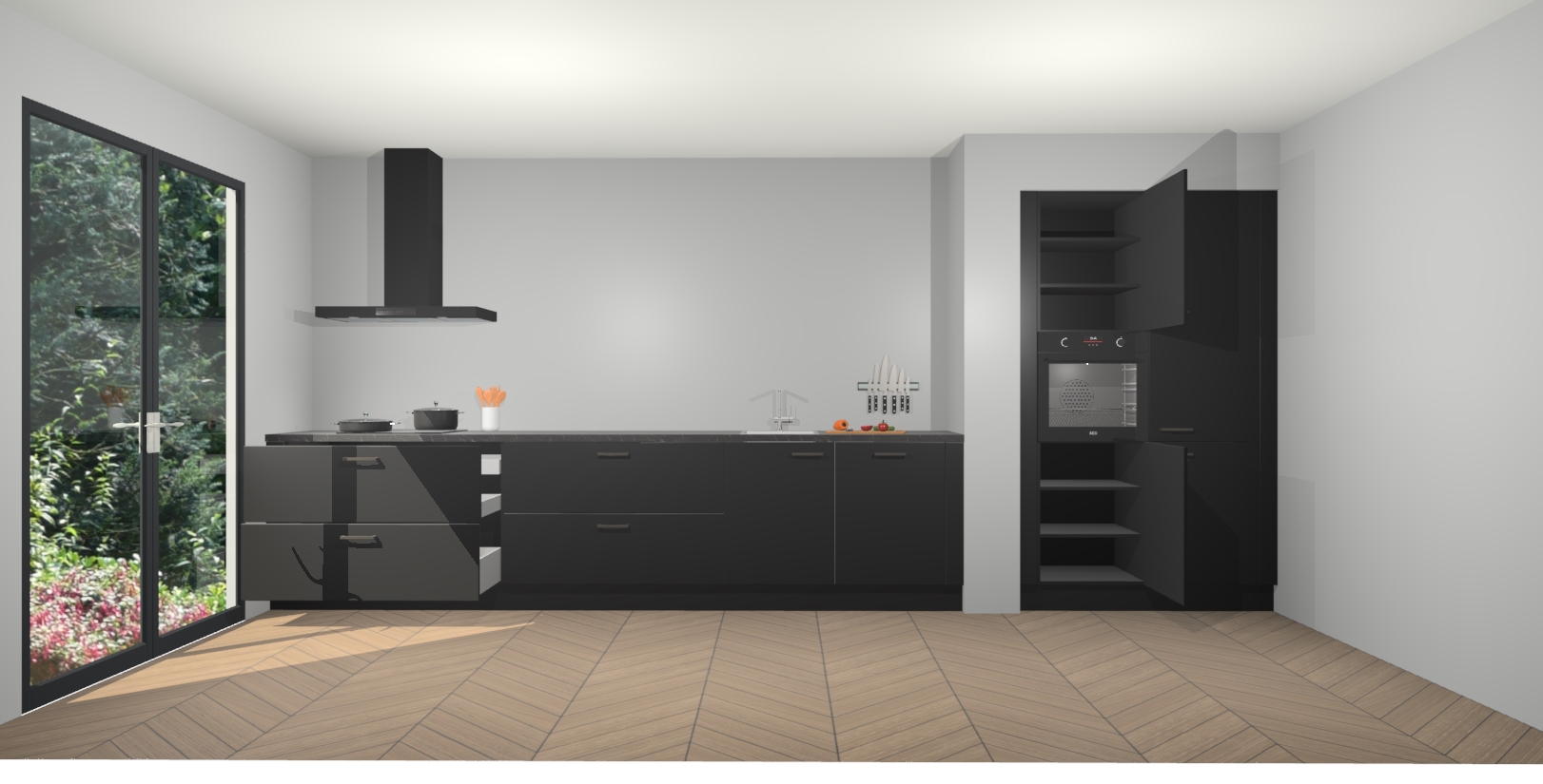 Maak kennis met de Zwarte keuken Calgary - de perfecte aanvulling voor uw moderne keuken! Ervaar tijdloos design, elegantie en een chique uitstraling met onze handgrepen, soft-close deuren en veel opbergruimte. Dit alles wordt aangeboden tegen een vaste lage prijs voor ongeëvenaarde Duitse keukenkwaliteit!