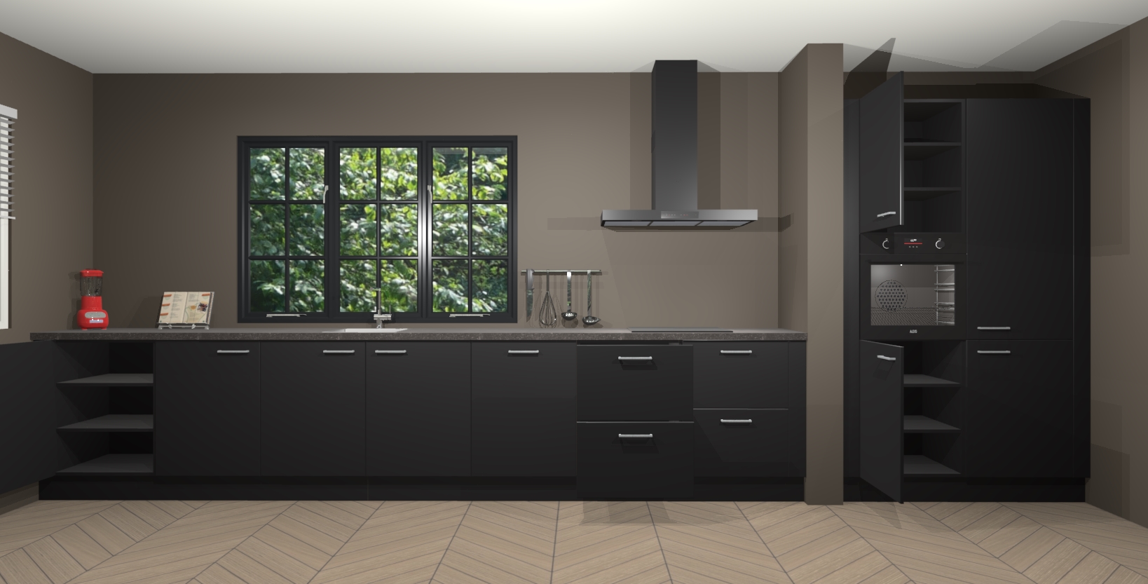 Maak kennis met de Zwarte keuken Elzas - de perfecte aanvulling voor uw moderne keuken! Ervaar tijdloos design, elegantie en een chique uitstraling met onze handgrepen, soft-close deuren en veel opbergruimte. Dit alles wordt aangeboden tegen een vaste lage prijs voor ongeëvenaarde Duitse keukenkwaliteit!