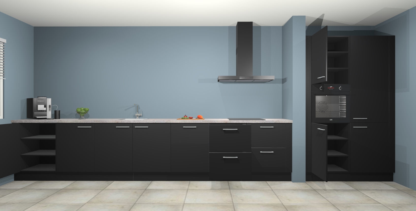 Maak kennis met de Zwarte keuken Elzas - de perfecte aanvulling voor uw moderne keuken! Ervaar tijdloos design, elegantie en een chique uitstraling met onze handgrepen, soft-close deuren en veel opbergruimte. Dit alles wordt aangeboden tegen een vaste lage prijs voor ongeëvenaarde Duitse keukenkwaliteit!