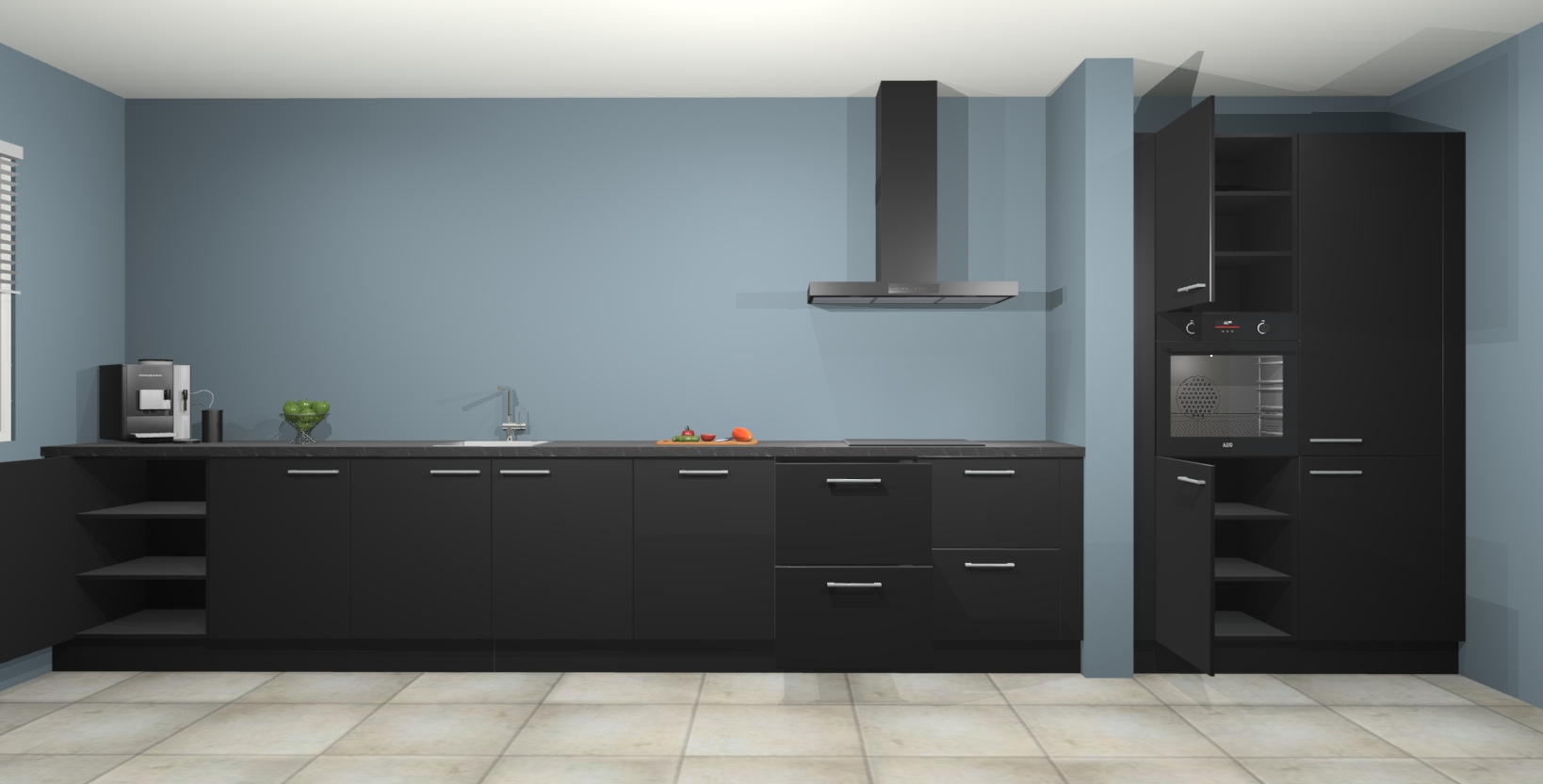 Maak kennis met de Zwarte keuken Elzas - de perfecte aanvulling voor uw moderne keuken! Ervaar tijdloos design, elegantie en een chique uitstraling met onze handgrepen, soft-close deuren en veel opbergruimte. Dit alles wordt aangeboden tegen een vaste lage prijs voor ongeëvenaarde Duitse keukenkwaliteit!