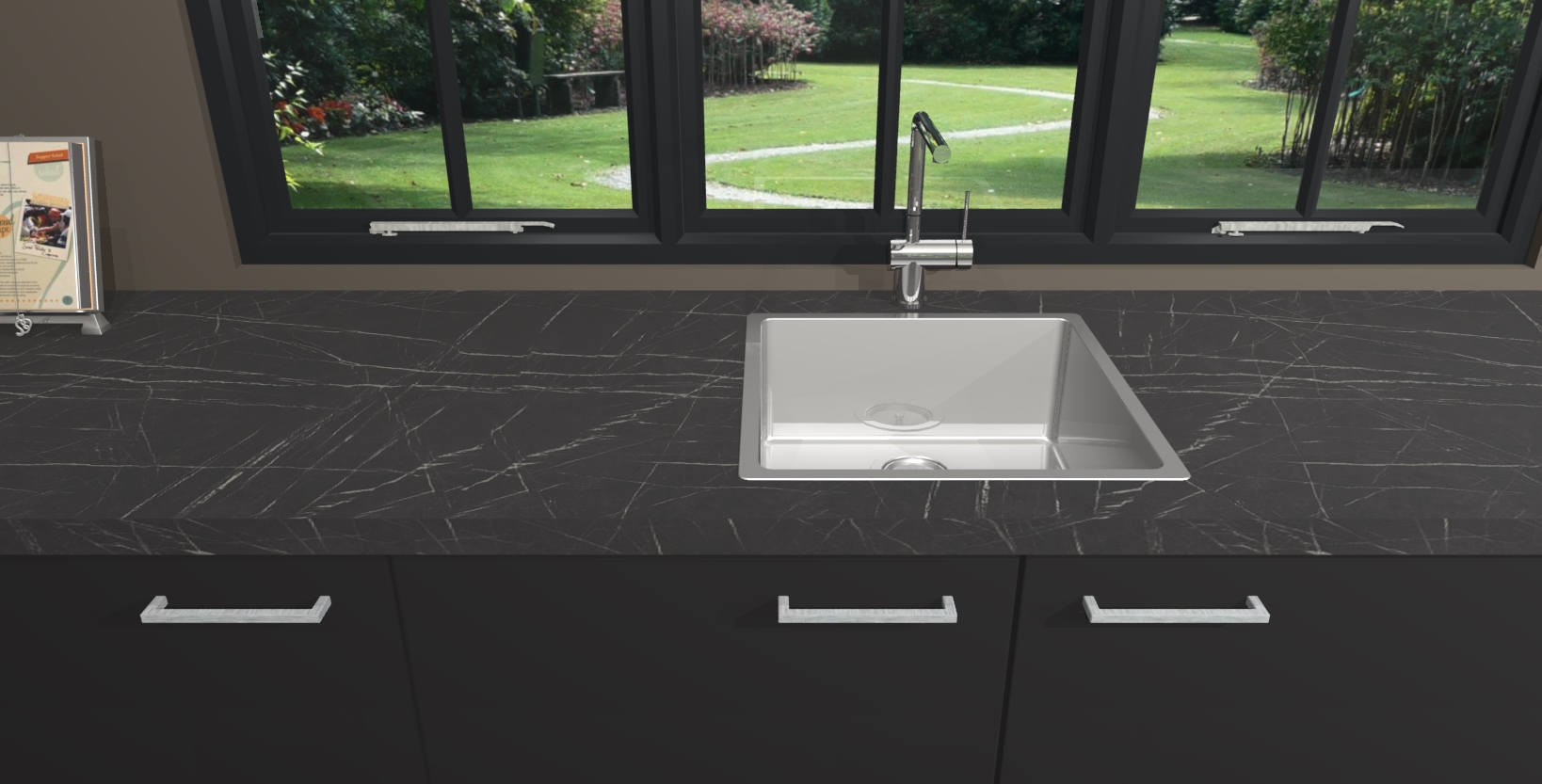 Maak kennis met de Zwarte keuken Elzas - de perfecte aanvulling voor uw moderne keuken! Ervaar tijdloos design, elegantie en een chique uitstraling met onze handgrepen, soft-close deuren en veel opbergruimte. Dit alles wordt aangeboden tegen een vaste lage prijs voor ongeëvenaarde Duitse keukenkwaliteit!