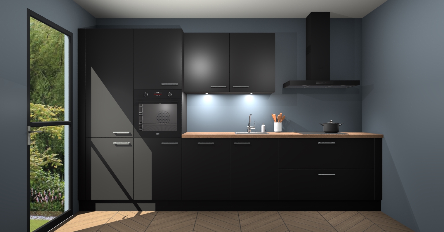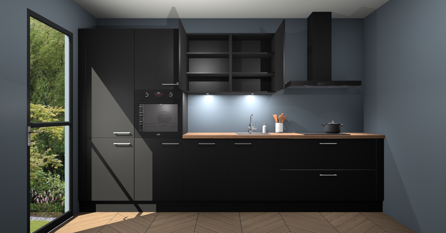 De Zwarte keuken Groenland: waar tijdloze elegantie en robuuste constructie elkaar ontmoeten. Door de combinatie van luxe en veerkracht zal deze keuken u de komende jaren goed van dienst zijn. De prachtige zachte look zorgt voor een tijdloze esthetiek die niet zal slijten met de tijd, waardoor u een decoratieve toevoeging aan uw huis creëert. Onze hoogwaardige kasten zijn gebouwd om lang mee te gaan en is zeer duurzaam en bestand tegen krassen, waardoor het ideaal is voor drukke gezinnen.