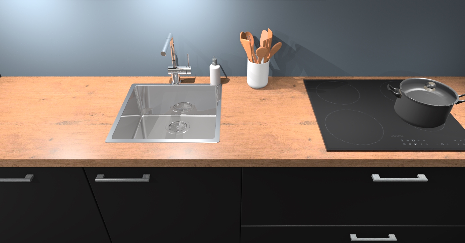 - Uitsparing van kookplaat, spoelbak en kraan dient u zelf te verzorgen.