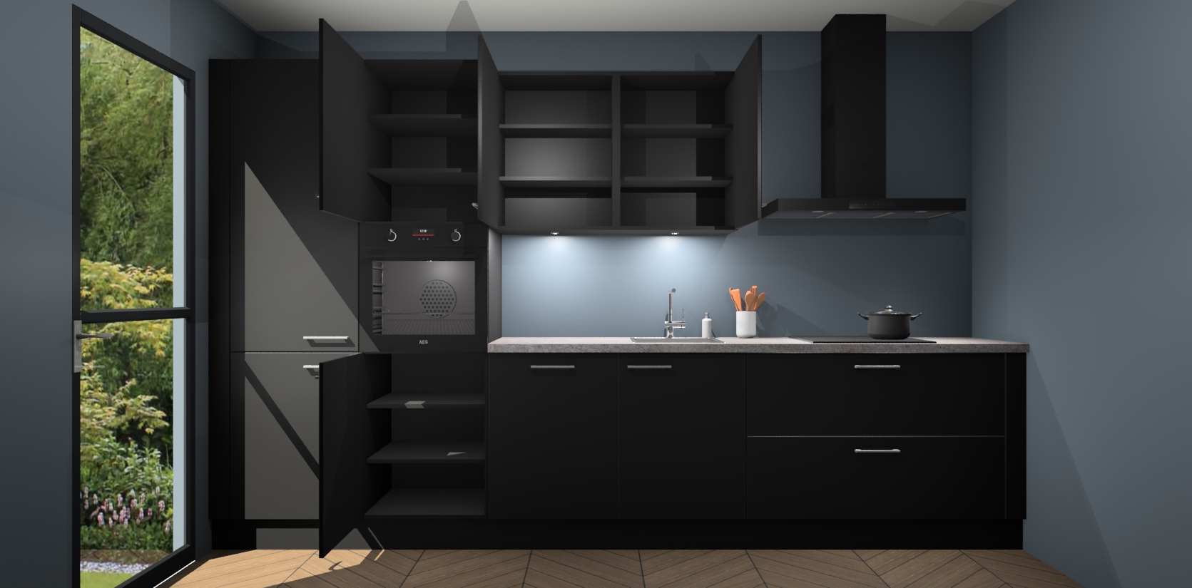 De Zwarte keuken Groenland: waar tijdloze elegantie en robuuste constructie elkaar ontmoeten. Door de combinatie van luxe en veerkracht zal deze keuken u de komende jaren goed van dienst zijn. De prachtige zachte look zorgt voor een tijdloze esthetiek die niet zal slijten met de tijd, waardoor u een decoratieve toevoeging aan uw huis creëert. Onze hoogwaardige kasten zijn gebouwd om lang mee te gaan en is zeer duurzaam en bestand tegen krassen, waardoor het ideaal is voor drukke gezinnen.