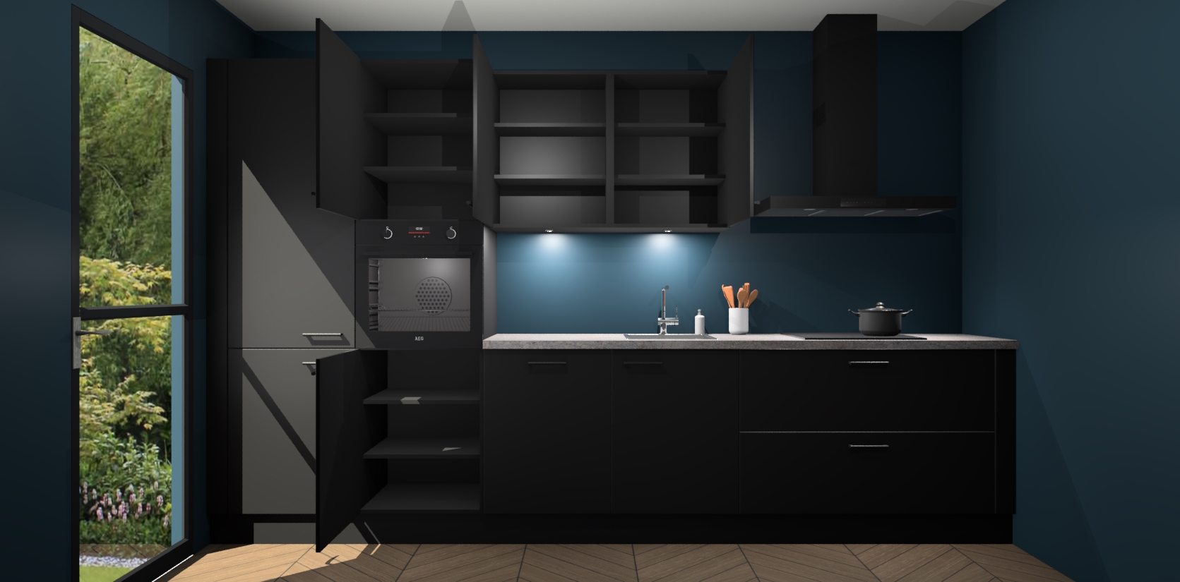 De Zwarte keuken Groenland: waar tijdloze elegantie en robuuste constructie elkaar ontmoeten. Door de combinatie van luxe en veerkracht zal deze keuken u de komende jaren goed van dienst zijn. De prachtige zachte look zorgt voor een tijdloze esthetiek die niet zal slijten met de tijd, waardoor u een decoratieve toevoeging aan uw huis creëert. Onze hoogwaardige kasten zijn gebouwd om lang mee te gaan en is zeer duurzaam en bestand tegen krassen, waardoor het ideaal is voor drukke gezinnen.