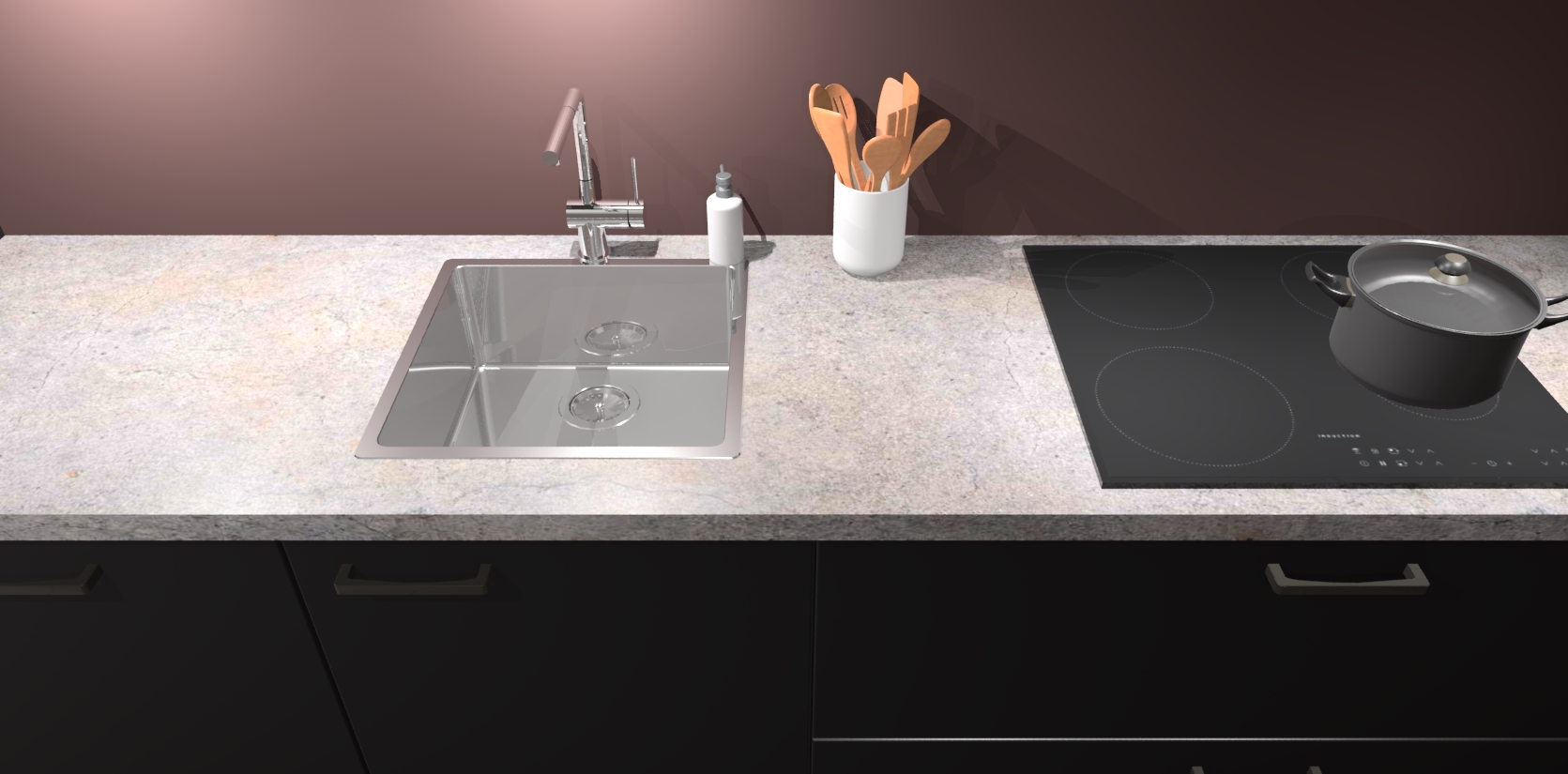 - Uitsparing van kookplaat, spoelbak en kraan dient u zelf te verzorgen.