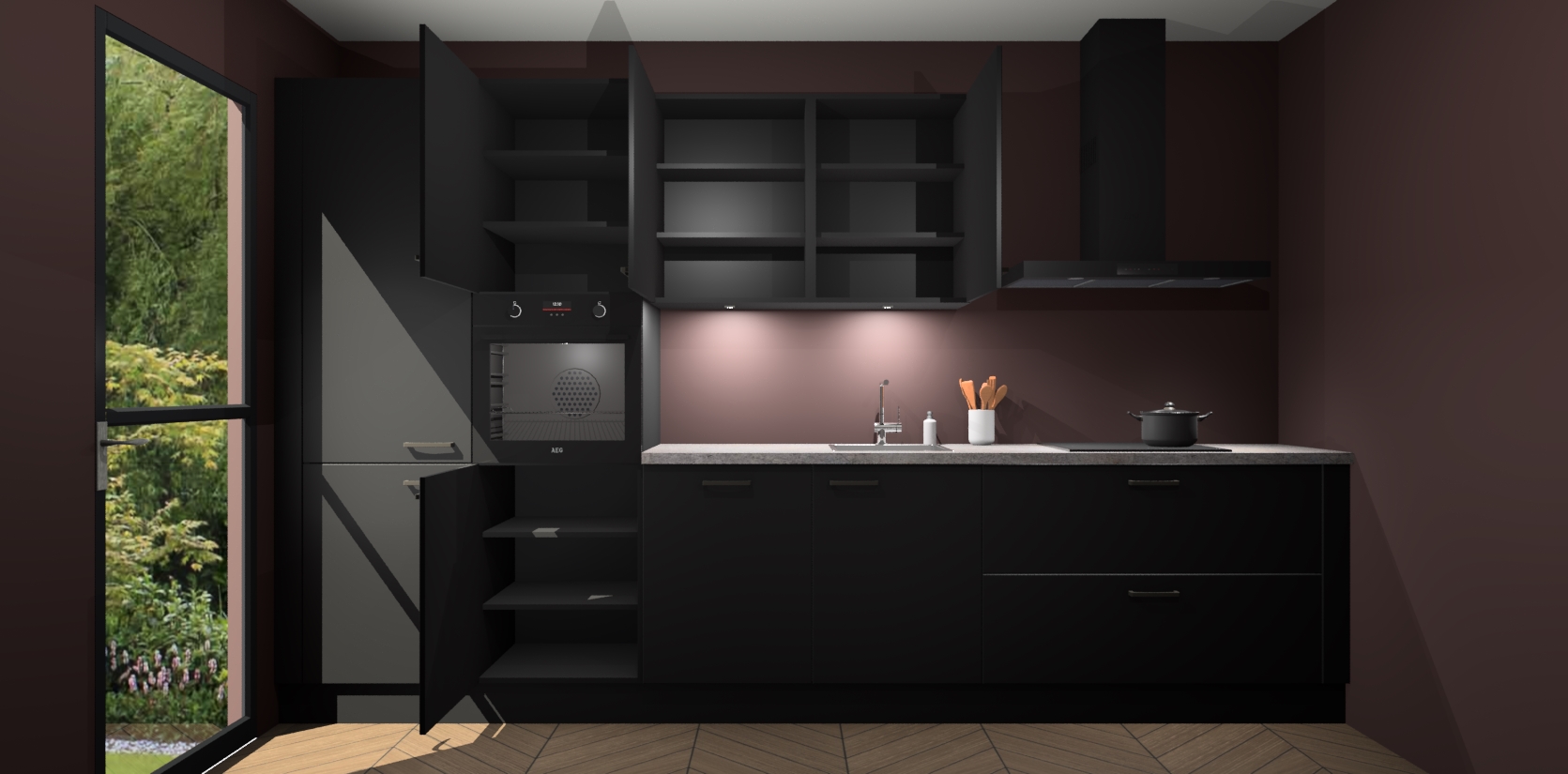 De Zwarte keuken Groenland: waar tijdloze elegantie en robuuste constructie elkaar ontmoeten. Door de combinatie van luxe en veerkracht zal deze keuken u de komende jaren goed van dienst zijn. De prachtige zachte look zorgt voor een tijdloze esthetiek die niet zal slijten met de tijd, waardoor u een decoratieve toevoeging aan uw huis creëert. Onze hoogwaardige kasten zijn gebouwd om lang mee te gaan en is zeer duurzaam en bestand tegen krassen, waardoor het ideaal is voor drukke gezinnen.