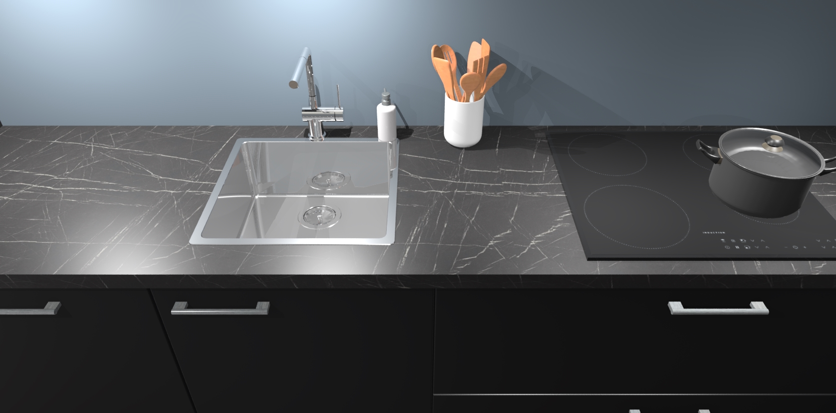 - Uitsparing van kookplaat, spoelbak en kraan dient u zelf te verzorgen.