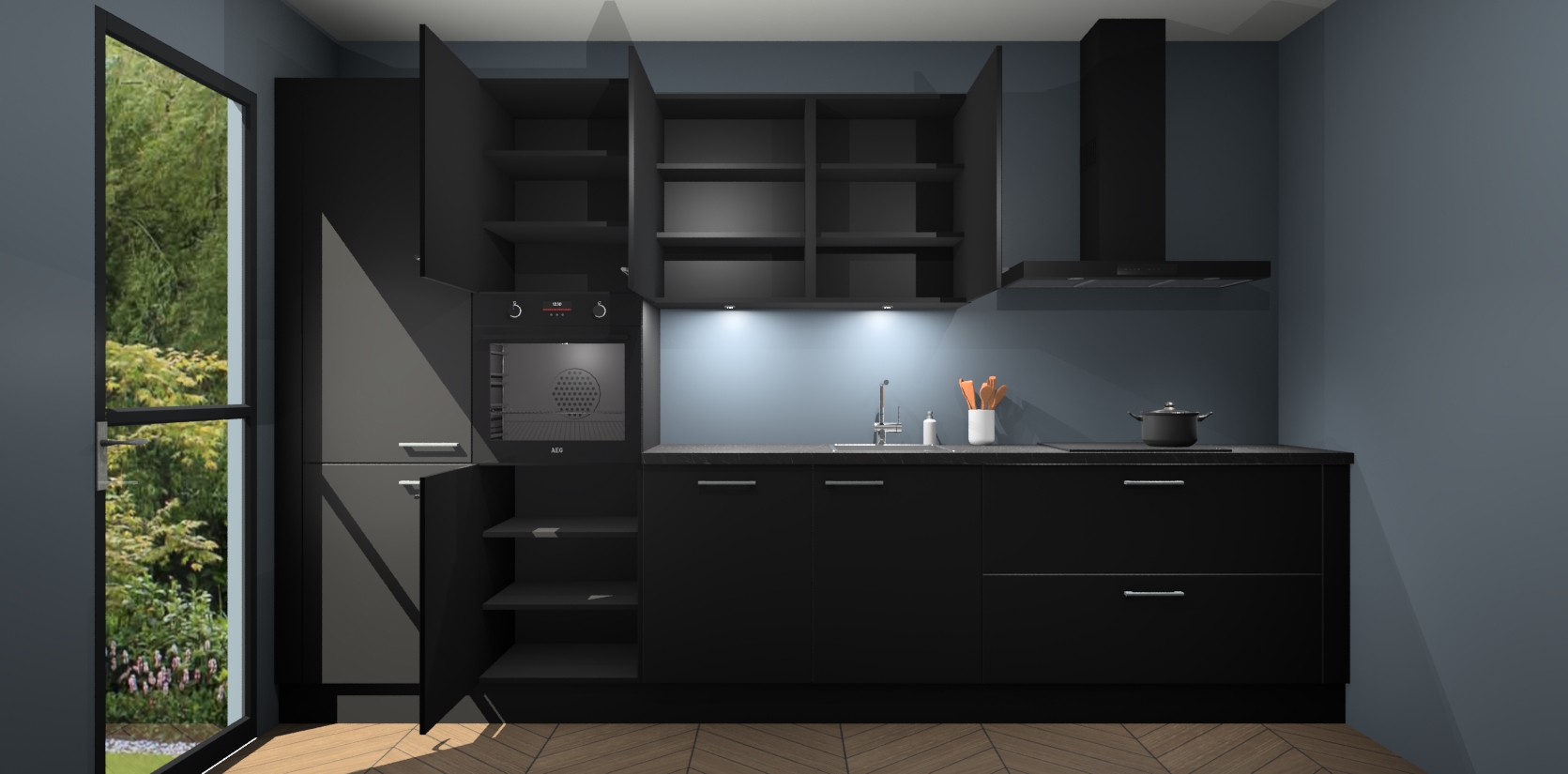 De Zwarte keuken Groenland: waar tijdloze elegantie en robuuste constructie elkaar ontmoeten. Door de combinatie van luxe en veerkracht zal deze keuken u de komende jaren goed van dienst zijn. De prachtige zachte look zorgt voor een tijdloze esthetiek die niet zal slijten met de tijd, waardoor u een decoratieve toevoeging aan uw huis creëert. Onze hoogwaardige kasten zijn gebouwd om lang mee te gaan en is zeer duurzaam en bestand tegen krassen, waardoor het ideaal is voor drukke gezinnen.