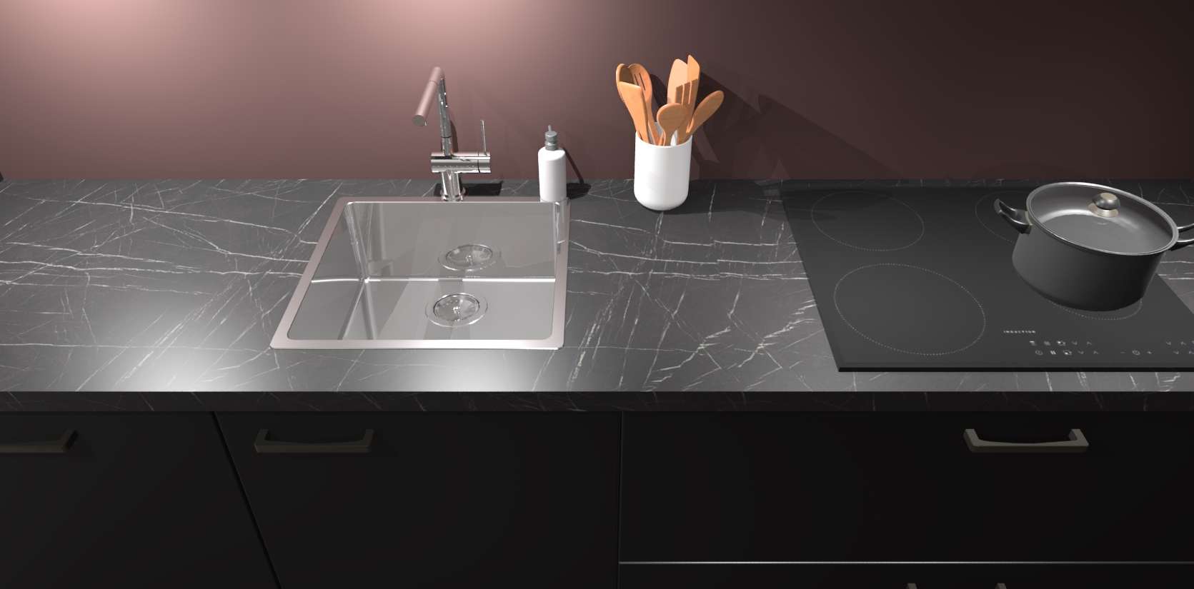• Bij een hoekwerkblad zijn de hoeken in gevreesd en op maat gemaakt