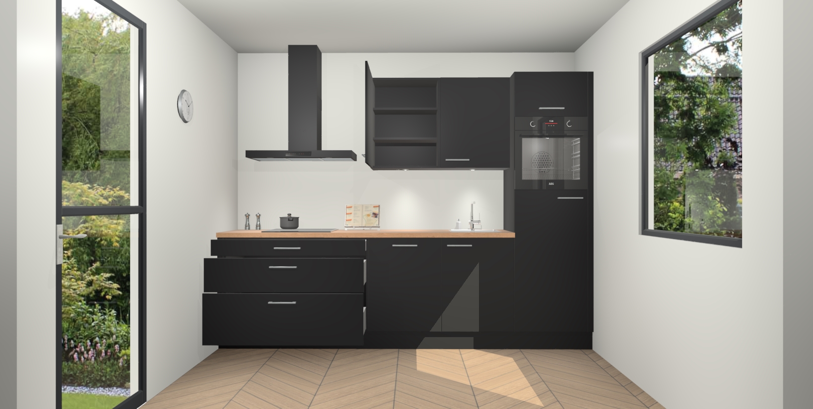 Maak uw keukendromen waar met de Zwarte keuken Havana! Onze strakke en stijlvolle keuken is perfect voor elk huis en combineert elegantie en functionaliteit in een luxueus pakket dat al uw gasten zeker zullen bewonderen.