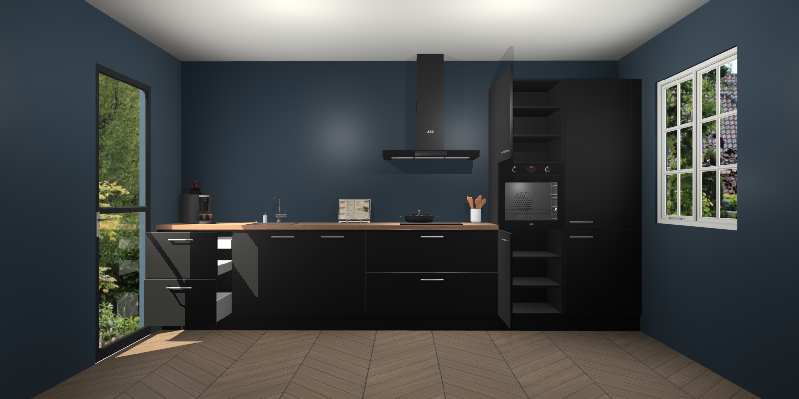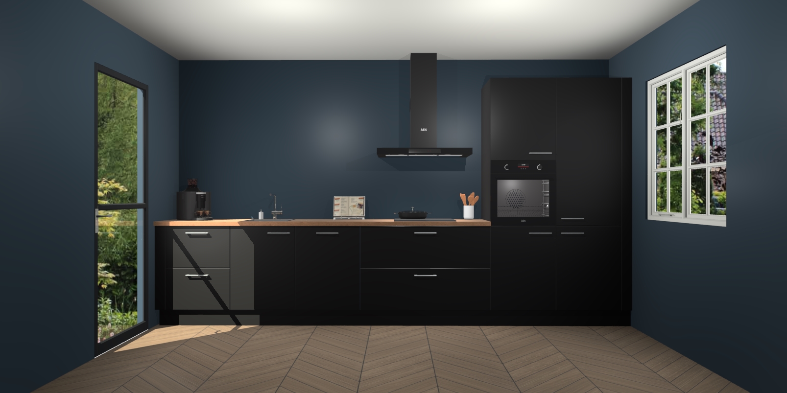 De Zwarte keuken Leuven is de perfecte mix van modern en tijdloos design. Met zijn prachtige glazen deuren op de bovenkastjes voegt hij echt iets speciaals en unieks toe aan elke keuken. En met vijf ingebouwde apparaten inbegrepen - een oven, inductiekookplaat, afzuigkap, vaatwasser en koelkast - kunt u deze keuken echt helemaal van uzelf maken! U kunt na bestelling ook upgraden naar AEG voor een nog hogere kwaliteitservaring.