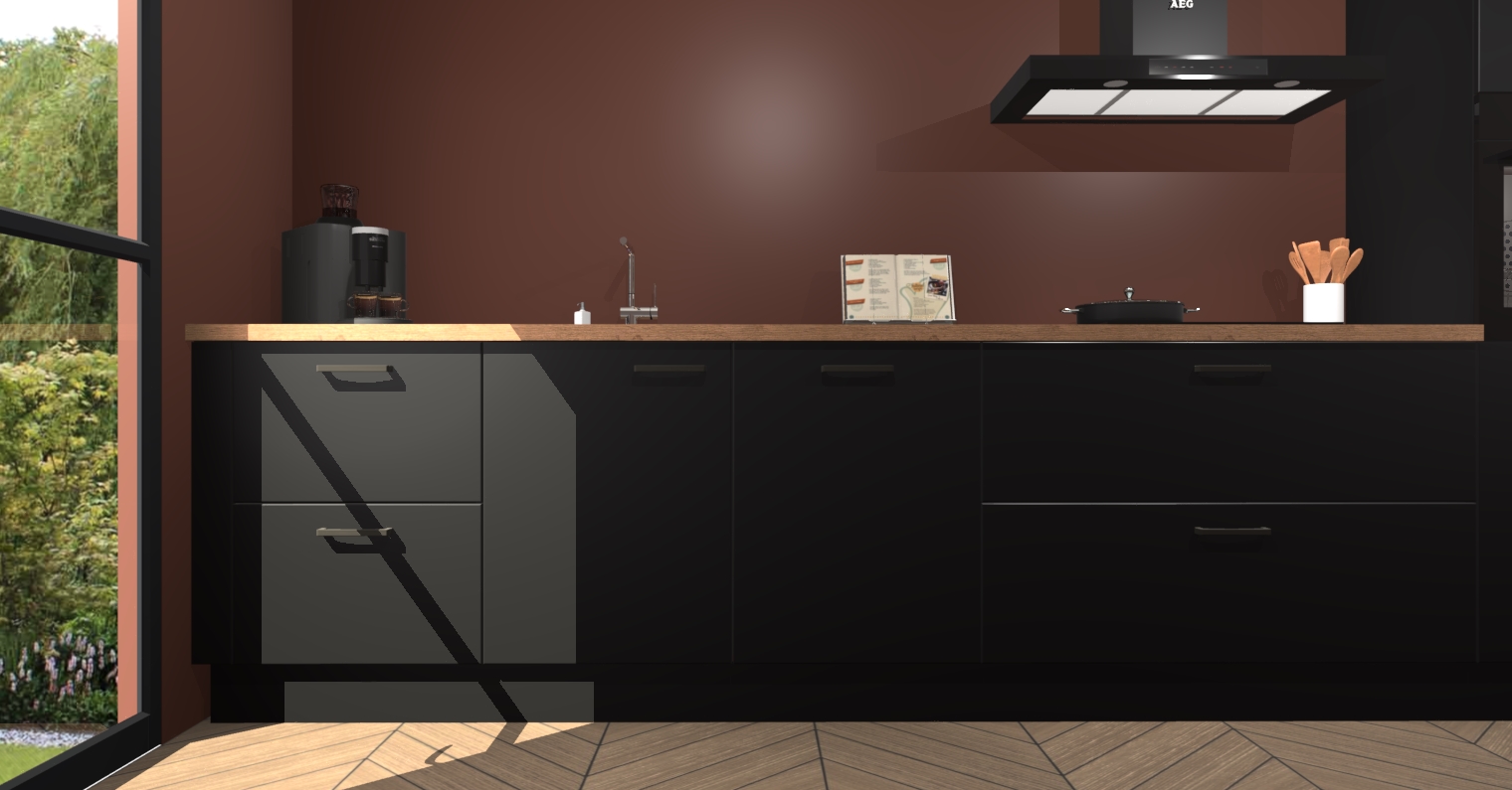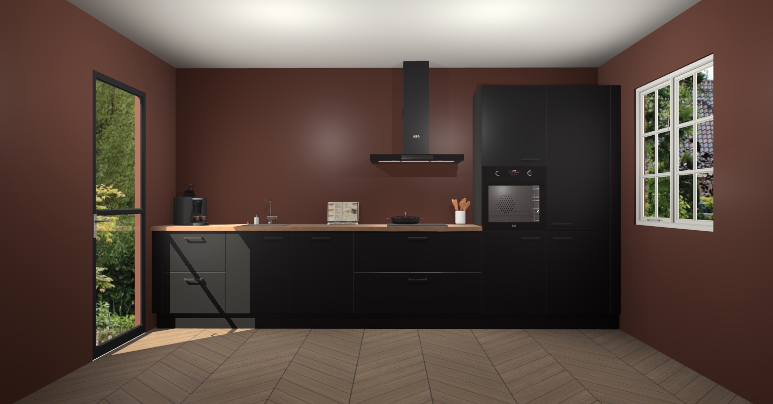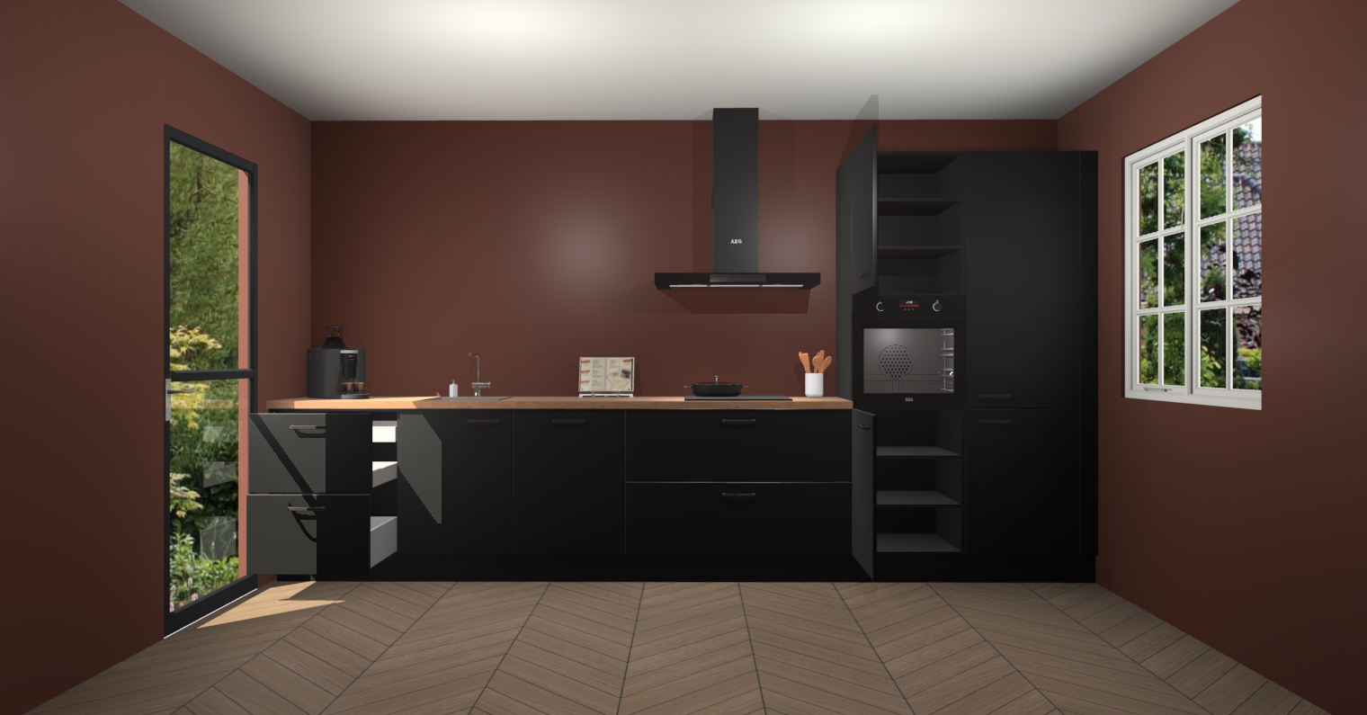 De Zwarte keuken Leuven is de perfecte mix van modern en tijdloos design. Met zijn prachtige glazen deuren op de bovenkastjes voegt hij echt iets speciaals en unieks toe aan elke keuken. En met vijf ingebouwde apparaten inbegrepen - een oven, inductiekookplaat, afzuigkap, vaatwasser en koelkast - kunt u deze keuken echt helemaal van uzelf maken! U kunt na bestelling ook upgraden naar AEG voor een nog hogere kwaliteitservaring.