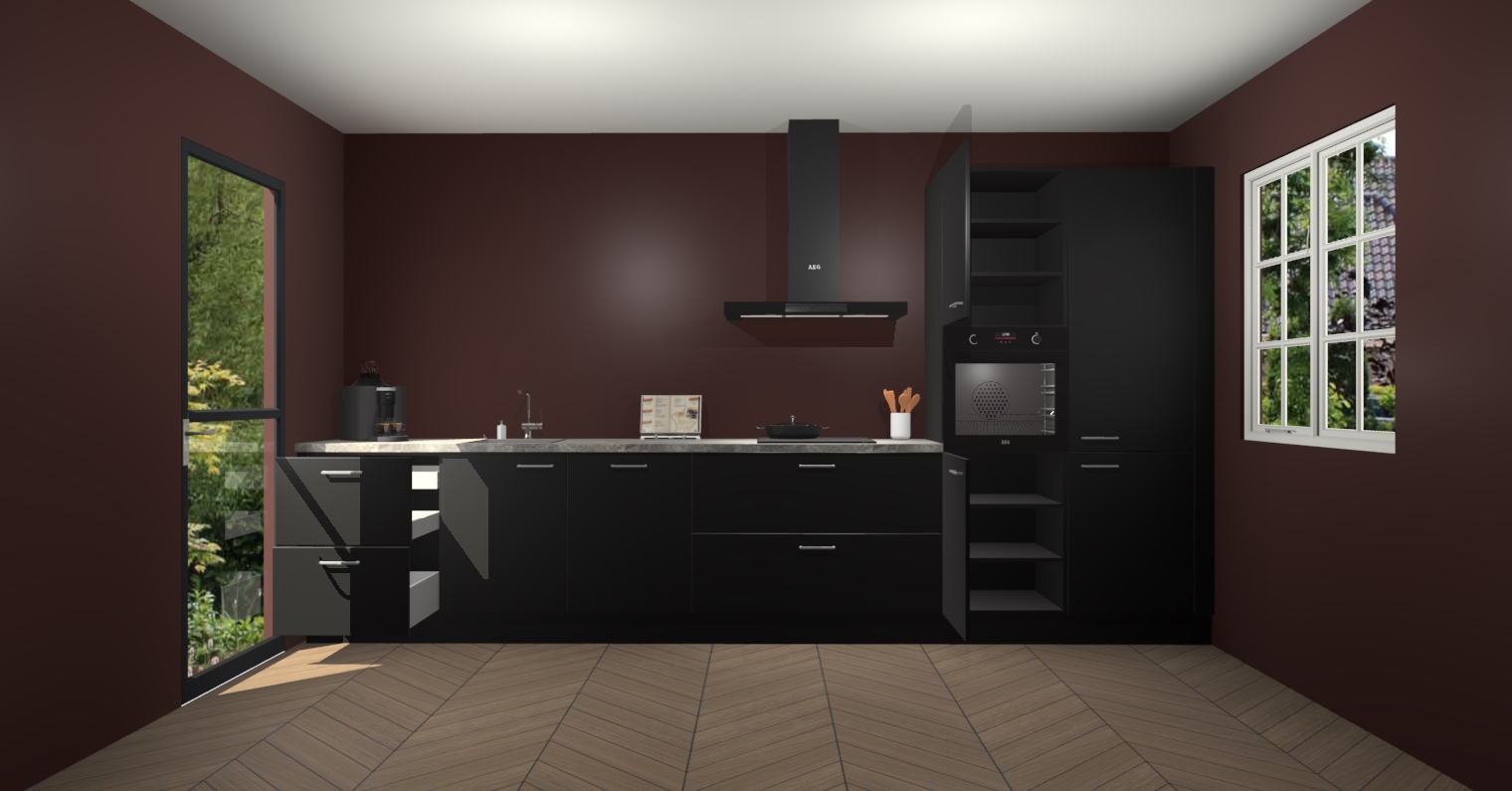 De Zwarte keuken Leuven is de perfecte mix van modern en tijdloos design. Met zijn prachtige glazen deuren op de bovenkastjes voegt hij echt iets speciaals en unieks toe aan elke keuken. En met vijf ingebouwde apparaten inbegrepen - een oven, inductiekookplaat, afzuigkap, vaatwasser en koelkast - kunt u deze keuken echt helemaal van uzelf maken! U kunt na bestelling ook upgraden naar AEG voor een nog hogere kwaliteitservaring.