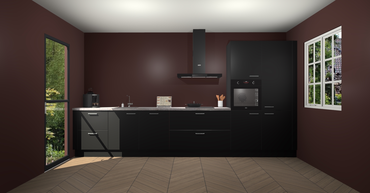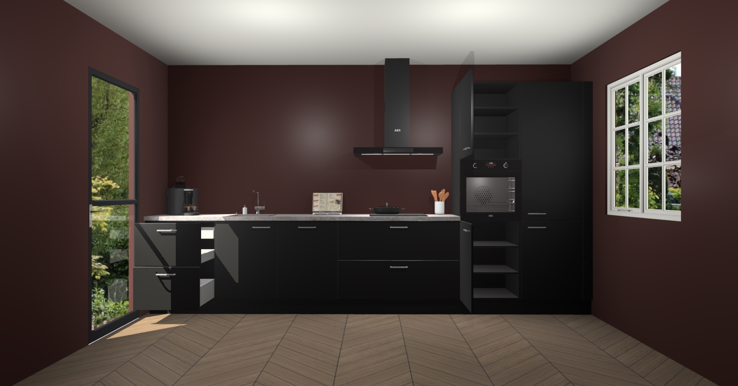 De Zwarte keuken Leuven is de perfecte mix van modern en tijdloos design. Met zijn prachtige glazen deuren op de bovenkastjes voegt hij echt iets speciaals en unieks toe aan elke keuken. En met vijf ingebouwde apparaten inbegrepen - een oven, inductiekookplaat, afzuigkap, vaatwasser en koelkast - kunt u deze keuken echt helemaal van uzelf maken! U kunt na bestelling ook upgraden naar AEG voor een nog hogere kwaliteitservaring.