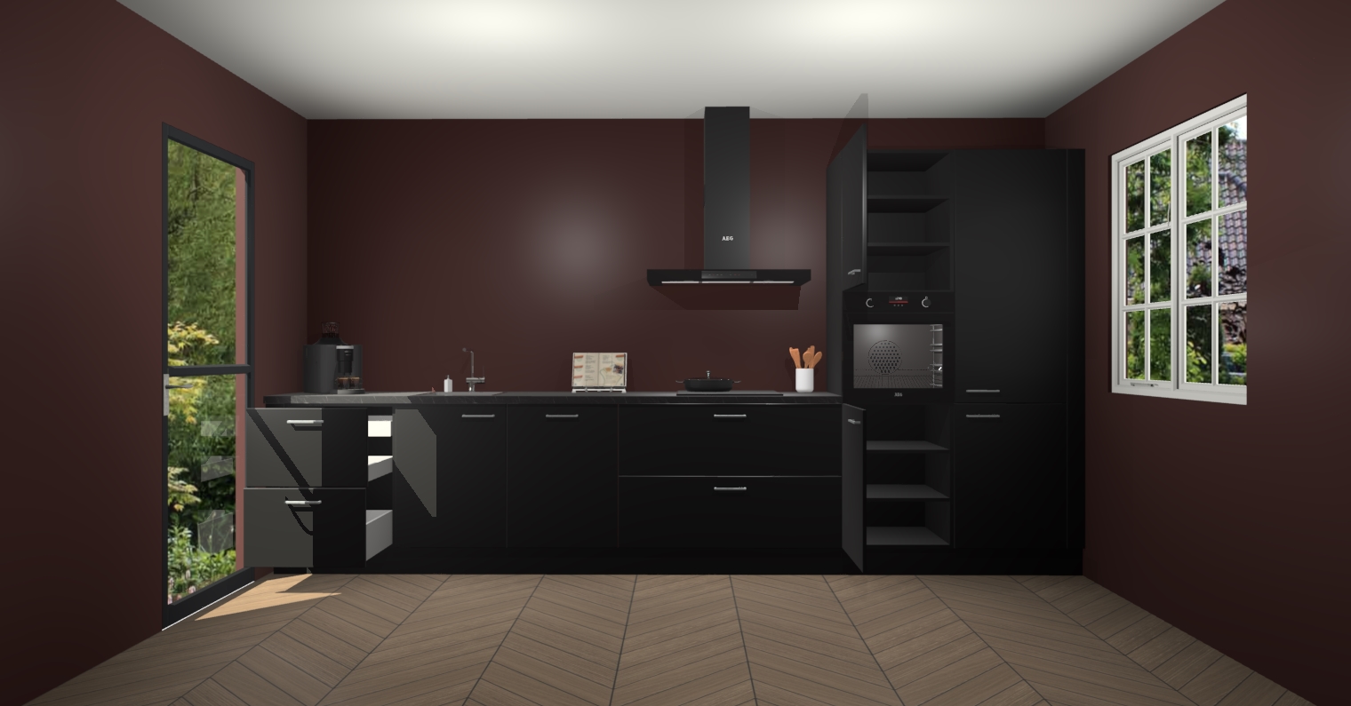 De Zwarte keuken Leuven is de perfecte mix van modern en tijdloos design. Met zijn prachtige glazen deuren op de bovenkastjes voegt hij echt iets speciaals en unieks toe aan elke keuken. En met vijf ingebouwde apparaten inbegrepen - een oven, inductiekookplaat, afzuigkap, vaatwasser en koelkast - kunt u deze keuken echt helemaal van uzelf maken! U kunt na bestelling ook upgraden naar AEG voor een nog hogere kwaliteitservaring.