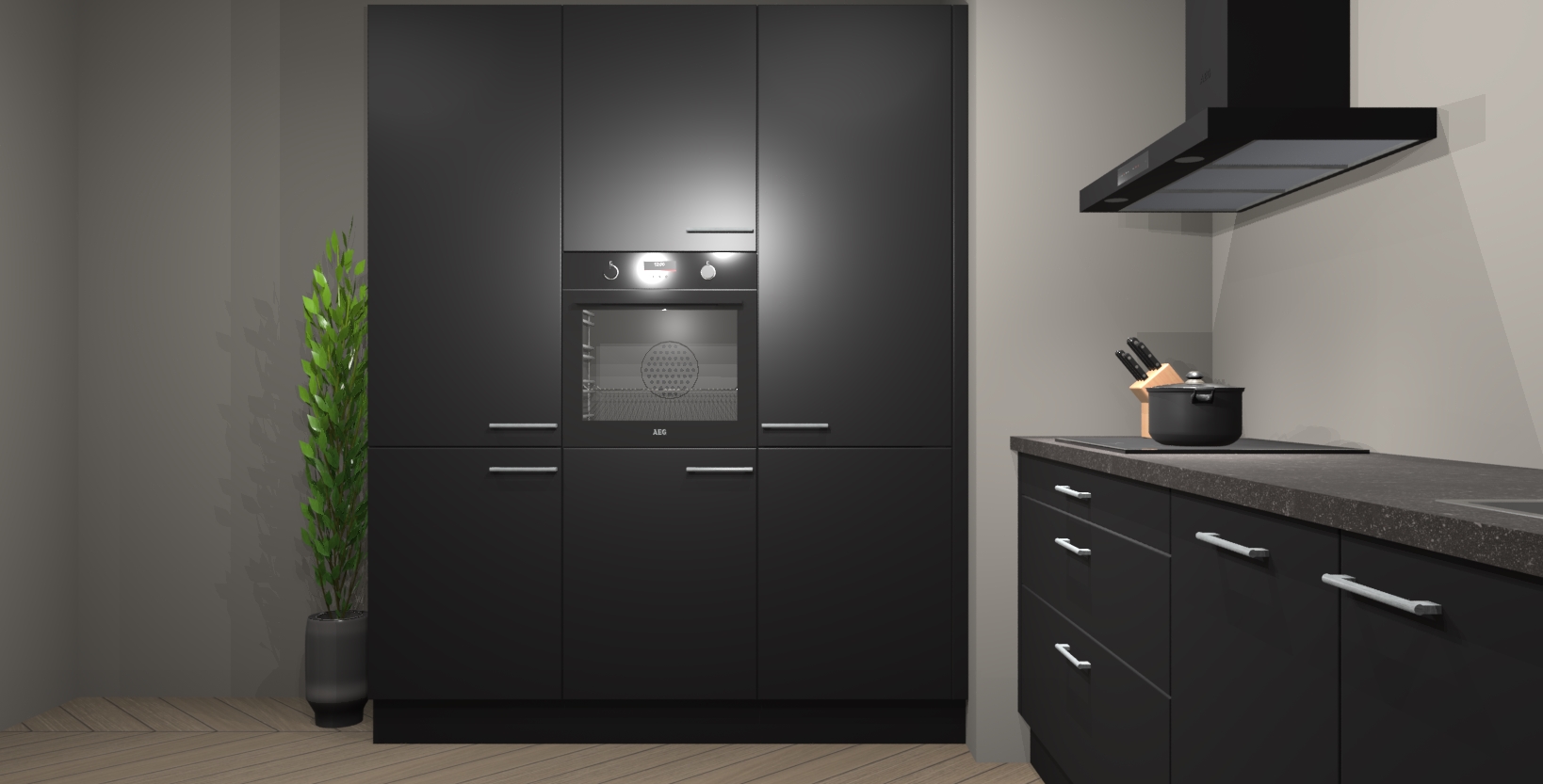 De softclose deuren openen en sluiten is ook heel eenvoudig - geniet van een moeiteloze keukenervaring, zelfs als er kinderen rondlopen. Voor extra gemak bij het plaatsen van uw bestelling bieden we ook een upgrade naar een kookplaat met geïntegreerde afzuiging.