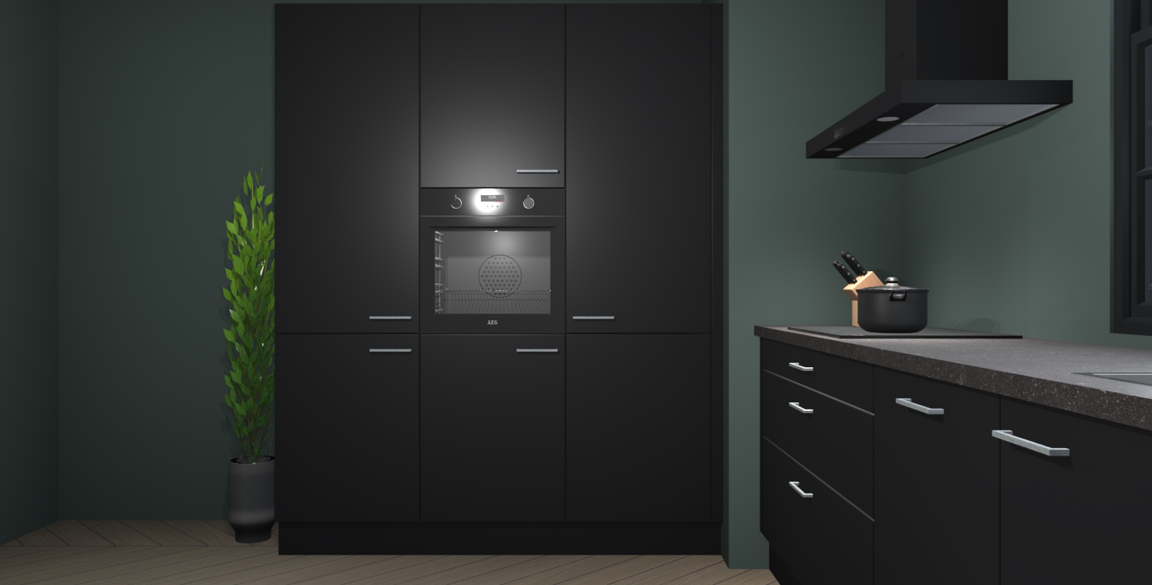 De softclose deuren openen en sluiten is ook heel eenvoudig - geniet van een moeiteloze keukenervaring, zelfs als er kinderen rondlopen. Voor extra gemak bij het plaatsen van uw bestelling bieden we ook een upgrade naar een kookplaat met geïntegreerde afzuiging.