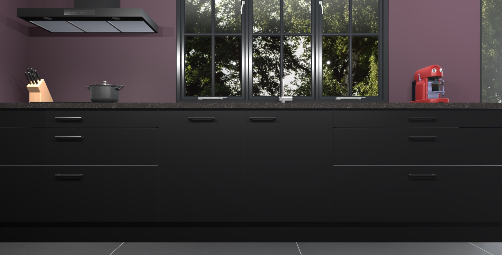De softclose deuren openen en sluiten is ook heel eenvoudig - geniet van een moeiteloze keukenervaring, zelfs als er kinderen rondlopen. Voor extra gemak bij het plaatsen van uw bestelling bieden we ook een upgrade naar een kookplaat met geïntegreerde afzuiging.