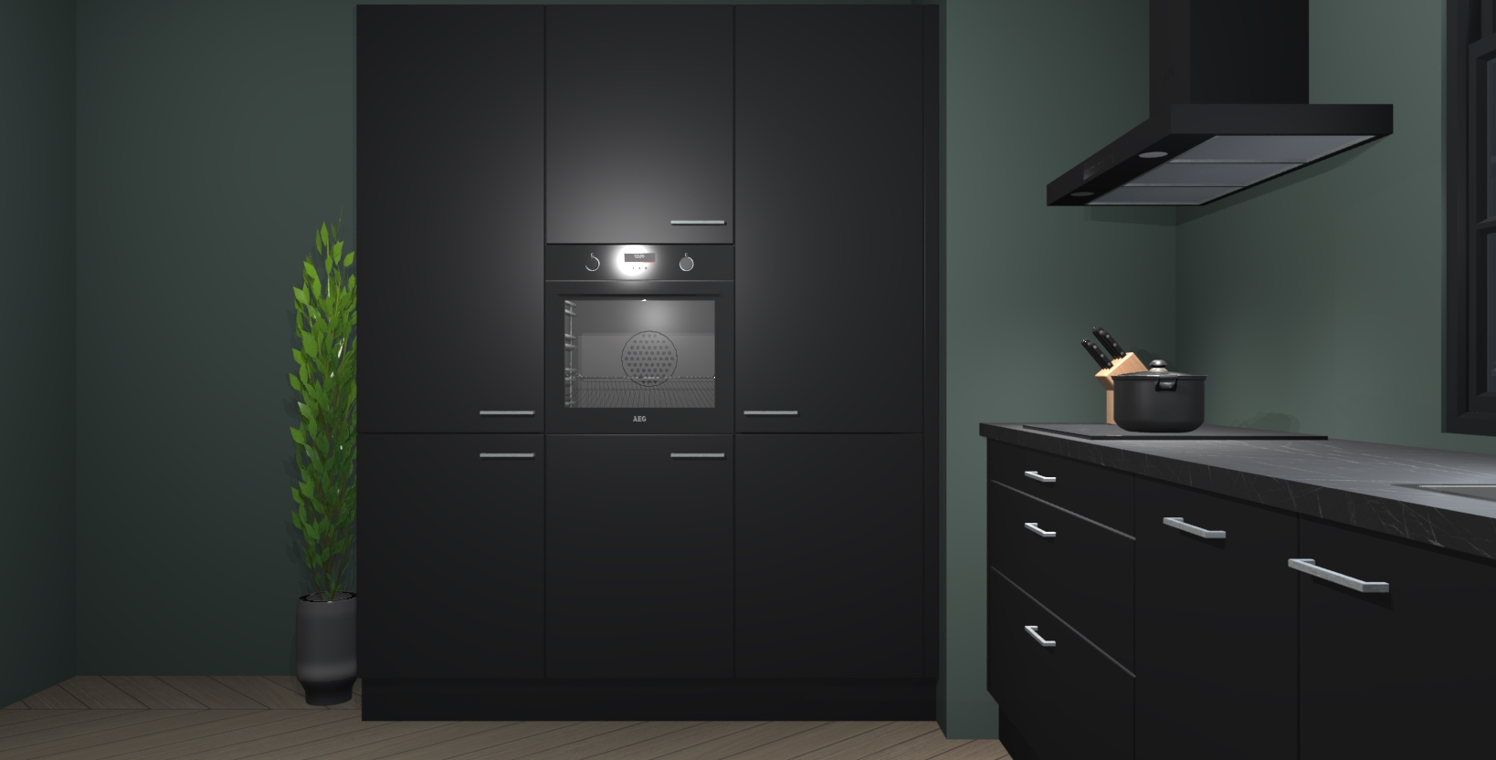 De softclose deuren openen en sluiten is ook heel eenvoudig - geniet van een moeiteloze keukenervaring, zelfs als er kinderen rondlopen. Voor extra gemak bij het plaatsen van uw bestelling bieden we ook een upgrade naar een kookplaat met geïntegreerde afzuiging.