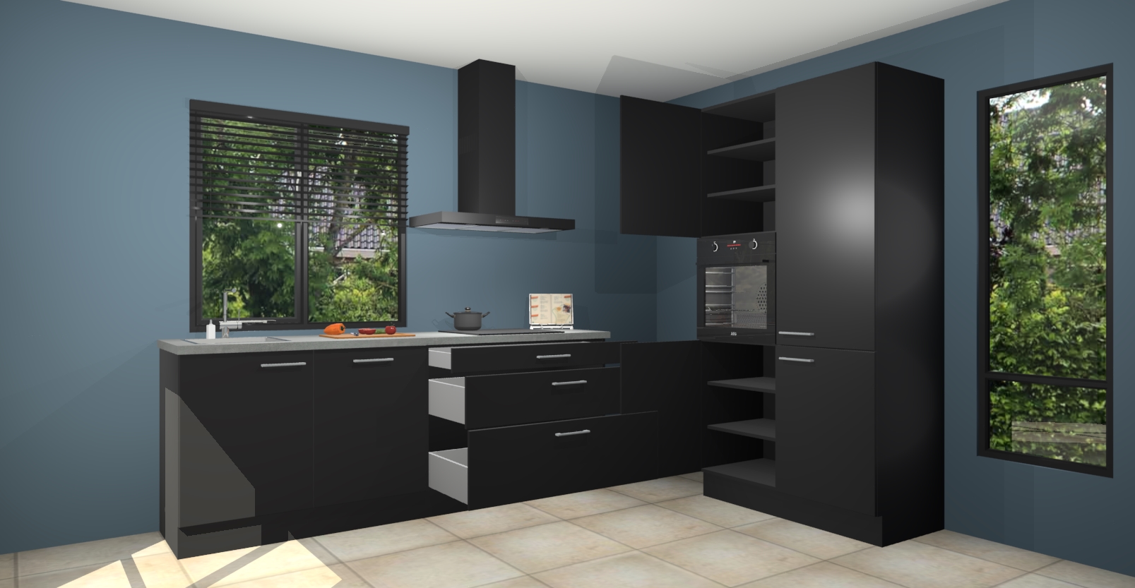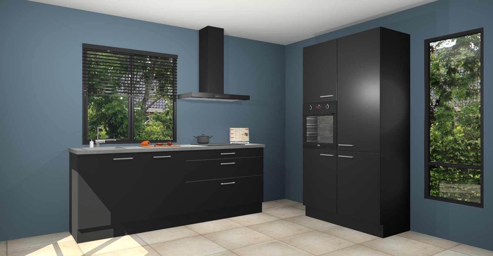 De setting is compleet gemaakt door de vijf inbouwapparaten: wanneer u gaat bestellen kunt u upgraden naar AEG-apparaten als oven, inductieplaat, afzuigkap, vaatwasser en koelkast. Kiest u voor onze Zwarte keuken Monaco, dan weet u zeker dat u te maken heeft met Duitse kwaliteit. Bovendien is er altijd sprake van een lage prijs en profiteren we aantrekkelijk leveringstermijn: die bedraagt slechts 7 weken ! Om het extra makkelijk te maken worden de keukenkasten reeds voorgemonteerd geleverd.