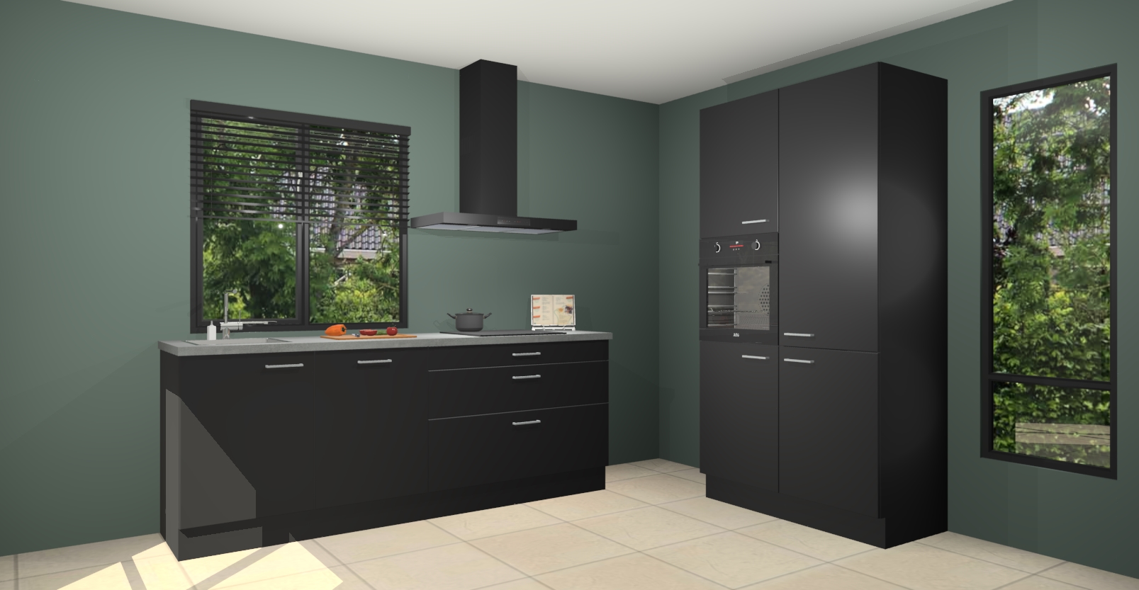 De setting is compleet gemaakt door de vijf inbouwapparaten: wanneer u gaat bestellen kunt u upgraden naar AEG-apparaten als oven, inductieplaat, afzuigkap, vaatwasser en koelkast. Kiest u voor onze Zwarte keuken Monaco, dan weet u zeker dat u te maken heeft met Duitse kwaliteit. Bovendien is er altijd sprake van een lage prijs en profiteren we aantrekkelijk leveringstermijn: die bedraagt slechts 7 weken ! Om het extra makkelijk te maken worden de keukenkasten reeds voorgemonteerd geleverd.