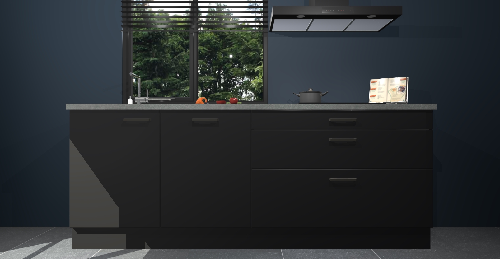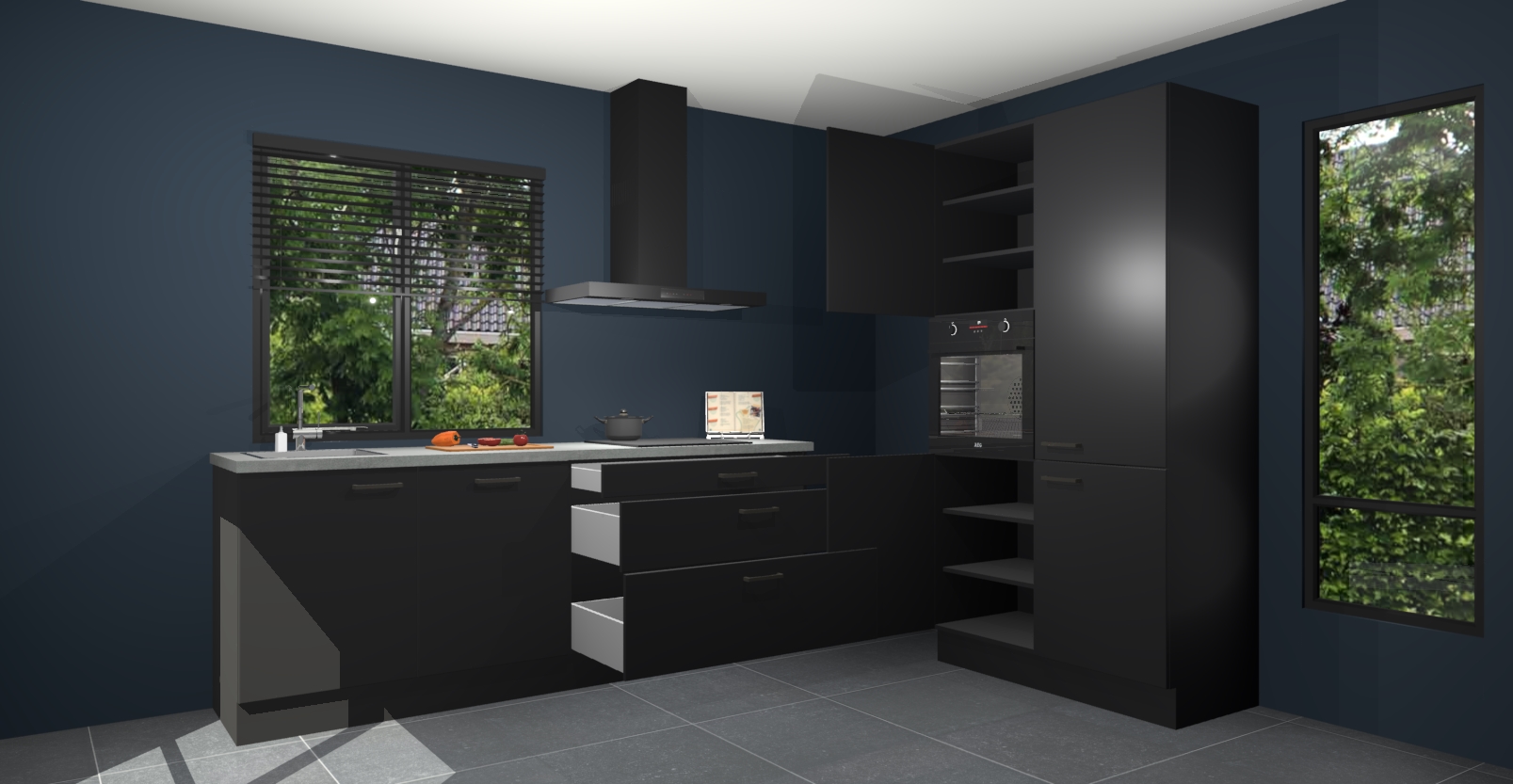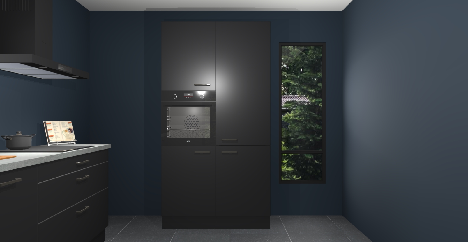 De setting is compleet gemaakt door de vijf inbouwapparaten: wanneer u gaat bestellen kunt u upgraden naar AEG-apparaten als oven, inductieplaat, afzuigkap, vaatwasser en koelkast. Kiest u voor onze Zwarte keuken Monaco, dan weet u zeker dat u te maken heeft met Duitse kwaliteit. Bovendien is er altijd sprake van een lage prijs en profiteren we aantrekkelijk leveringstermijn: die bedraagt slechts 7 weken ! Om het extra makkelijk te maken worden de keukenkasten reeds voorgemonteerd geleverd.