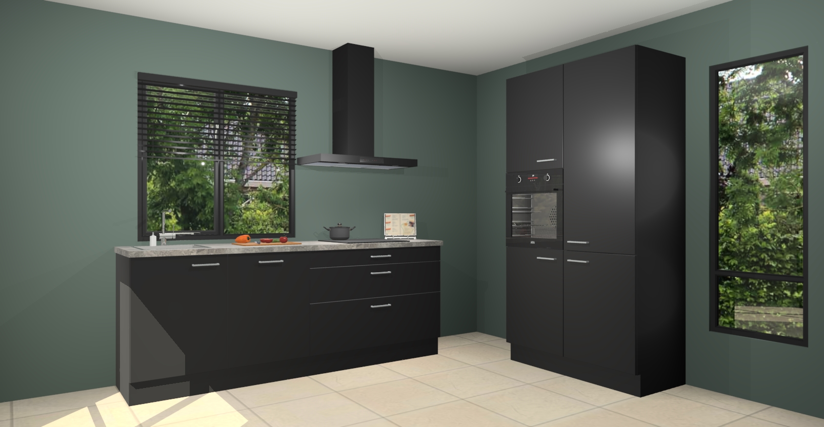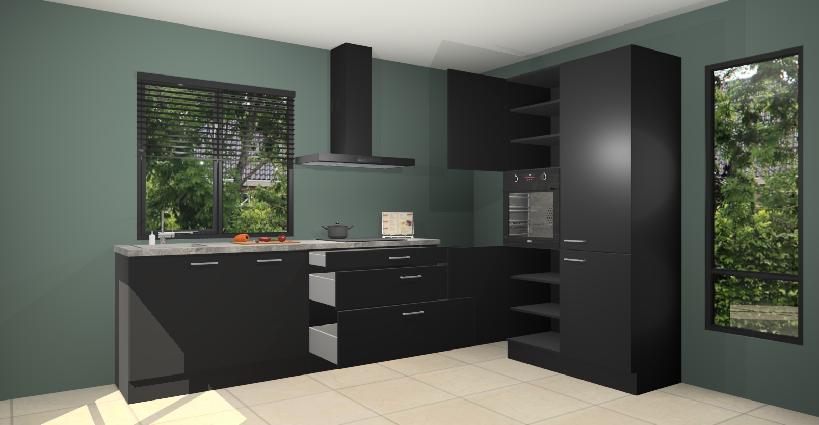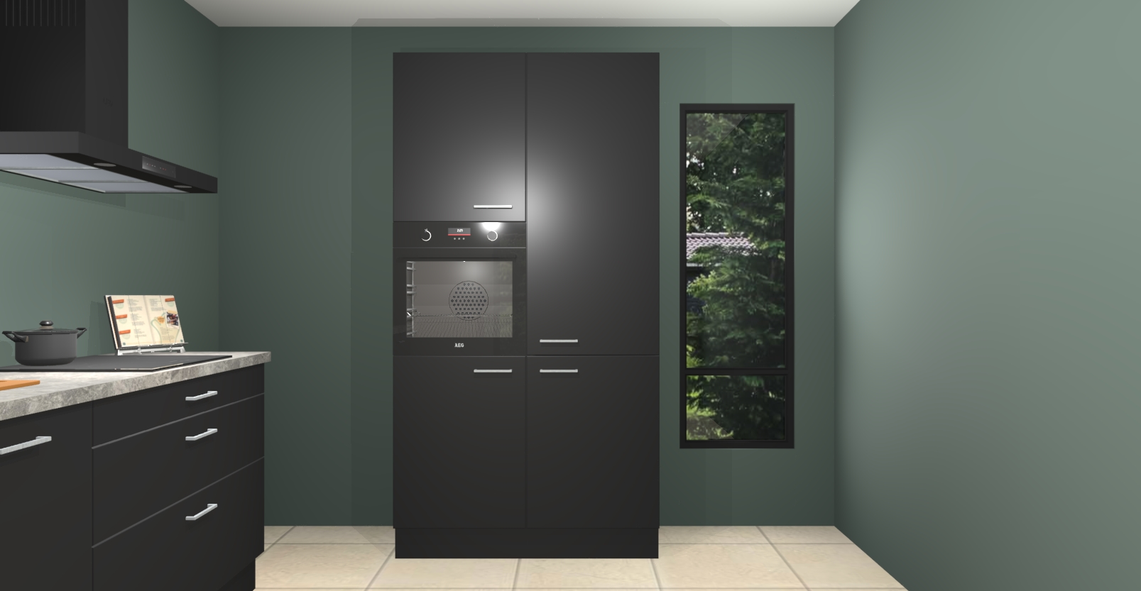 De setting is compleet gemaakt door de vijf inbouwapparaten: wanneer u gaat bestellen kunt u upgraden naar AEG-apparaten als oven, inductieplaat, afzuigkap, vaatwasser en koelkast. Kiest u voor onze Zwarte keuken Monaco, dan weet u zeker dat u te maken heeft met Duitse kwaliteit. Bovendien is er altijd sprake van een lage prijs en profiteren we aantrekkelijk leveringstermijn: die bedraagt slechts 7 weken ! Om het extra makkelijk te maken worden de keukenkasten reeds voorgemonteerd geleverd.