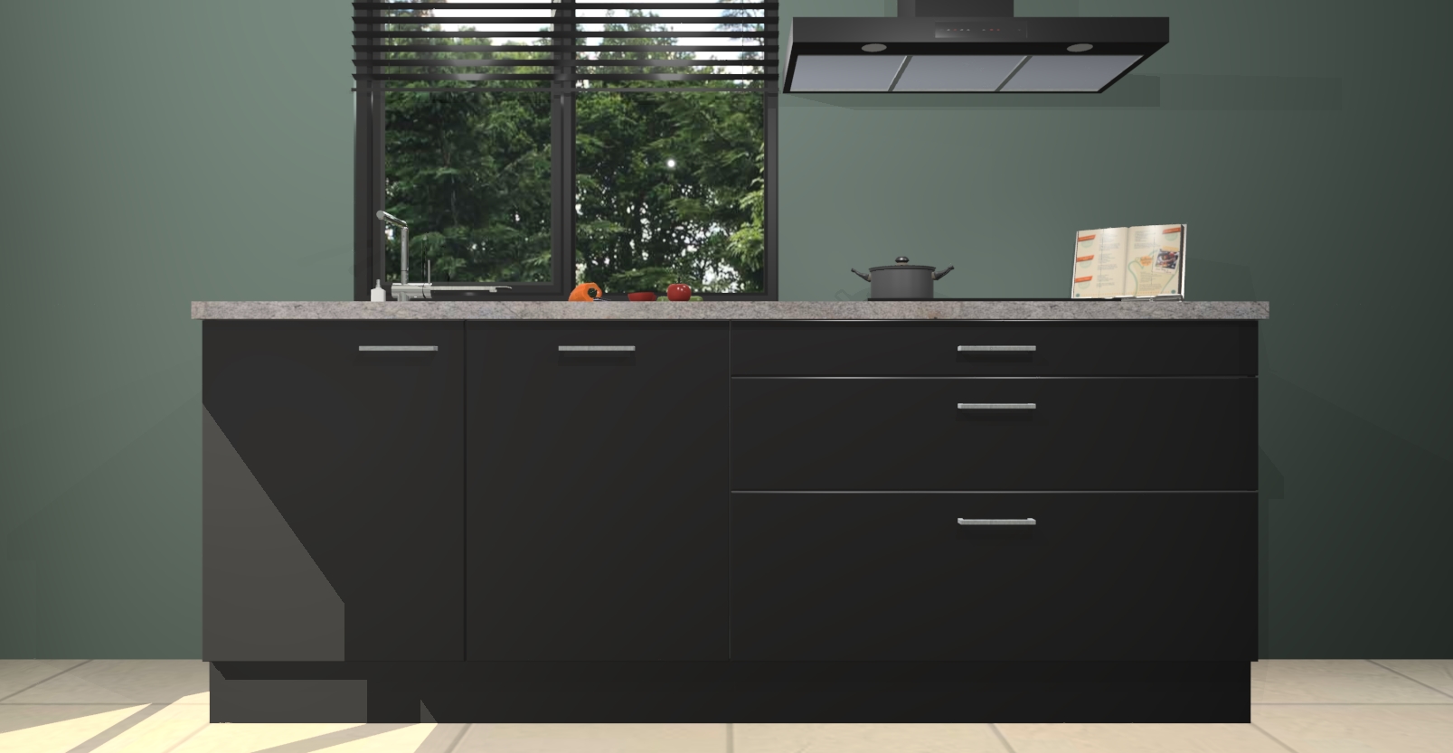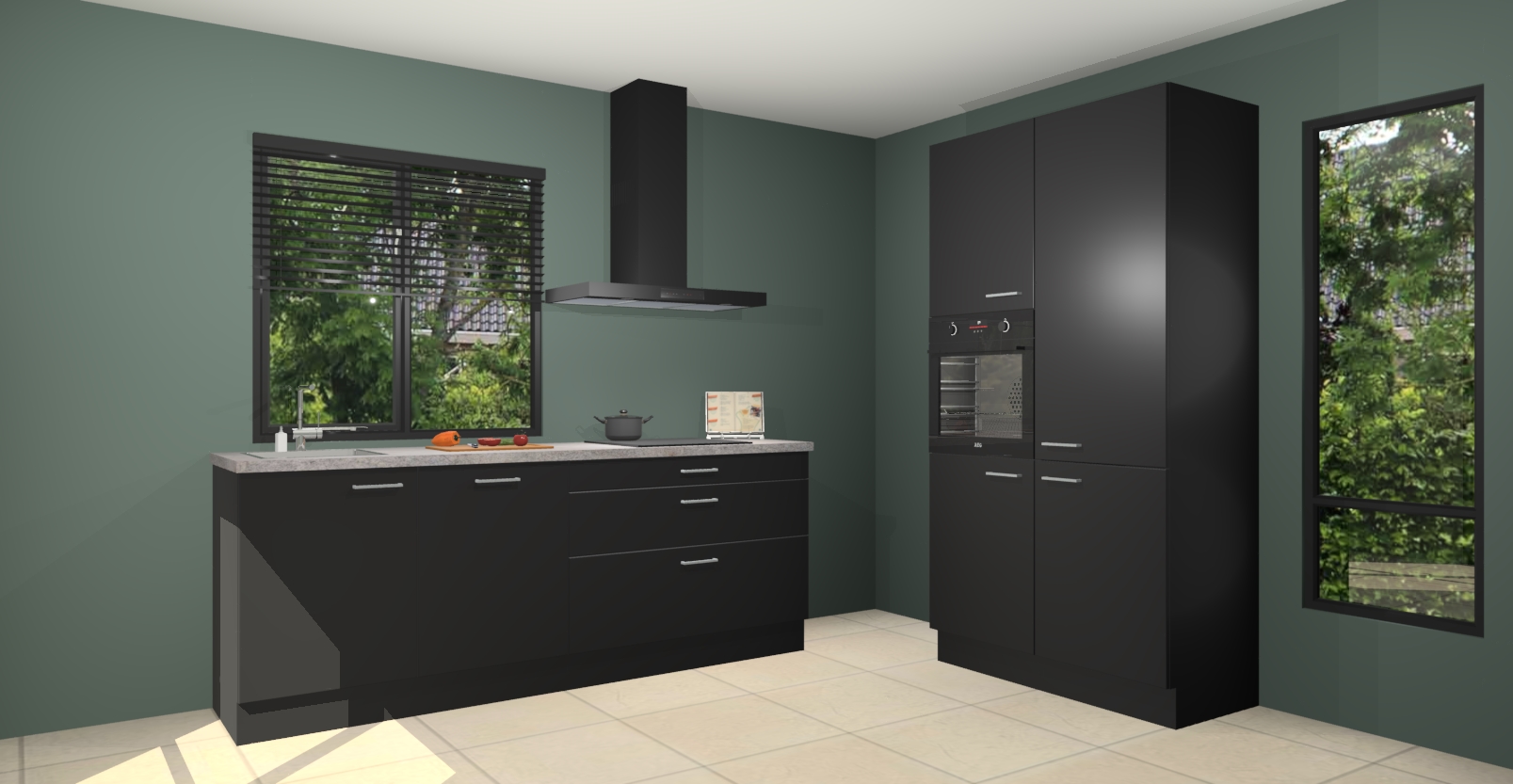 De setting is compleet gemaakt door de vijf inbouwapparaten: wanneer u gaat bestellen kunt u upgraden naar AEG-apparaten als oven, inductieplaat, afzuigkap, vaatwasser en koelkast. Kiest u voor onze Zwarte keuken Monaco, dan weet u zeker dat u te maken heeft met Duitse kwaliteit. Bovendien is er altijd sprake van een lage prijs en profiteren we aantrekkelijk leveringstermijn: die bedraagt slechts 7 weken ! Om het extra makkelijk te maken worden de keukenkasten reeds voorgemonteerd geleverd.