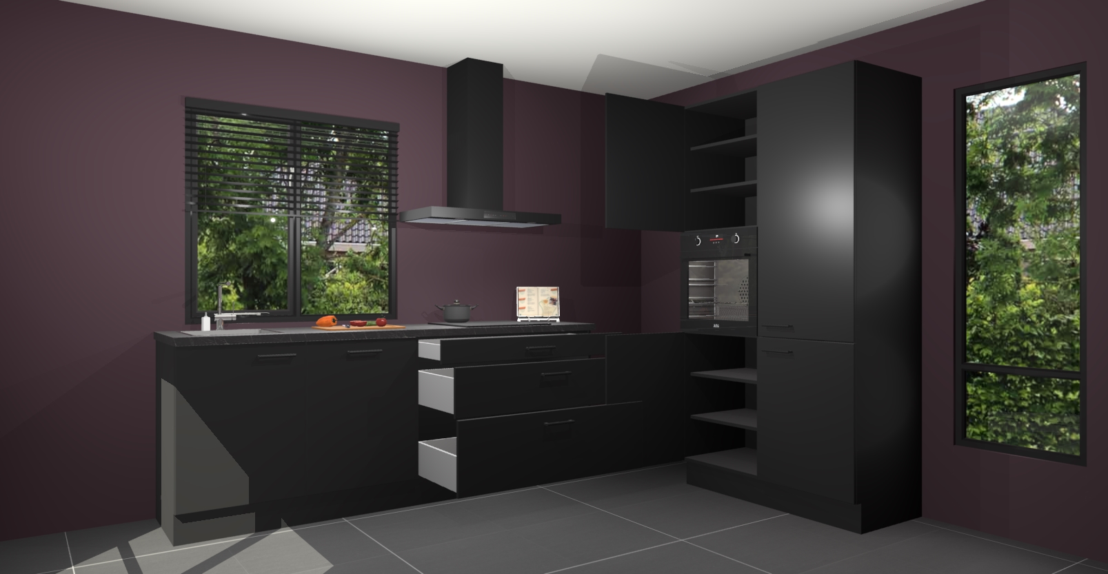 De setting is compleet gemaakt door de vijf inbouwapparaten: wanneer u gaat bestellen kunt u upgraden naar AEG-apparaten als oven, inductieplaat, afzuigkap, vaatwasser en koelkast. Kiest u voor onze Zwarte keuken Monaco, dan weet u zeker dat u te maken heeft met Duitse kwaliteit. Bovendien is er altijd sprake van een lage prijs en profiteren we aantrekkelijk leveringstermijn: die bedraagt slechts 7 weken ! Om het extra makkelijk te maken worden de keukenkasten reeds voorgemonteerd geleverd.